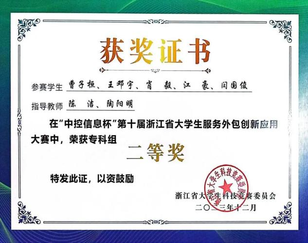 6)2023年“中控信息杯”浙江省大学生服务外包创新应用大赛二等奖
