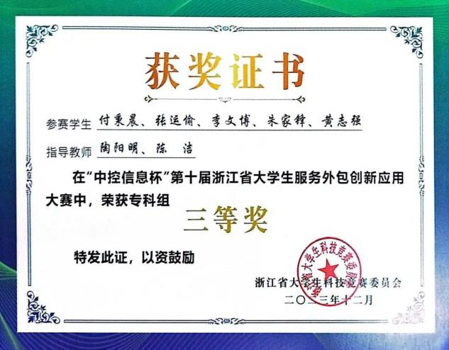 7)2023年“中控信息杯”浙江省大学生服务外包创新应用大赛三等奖