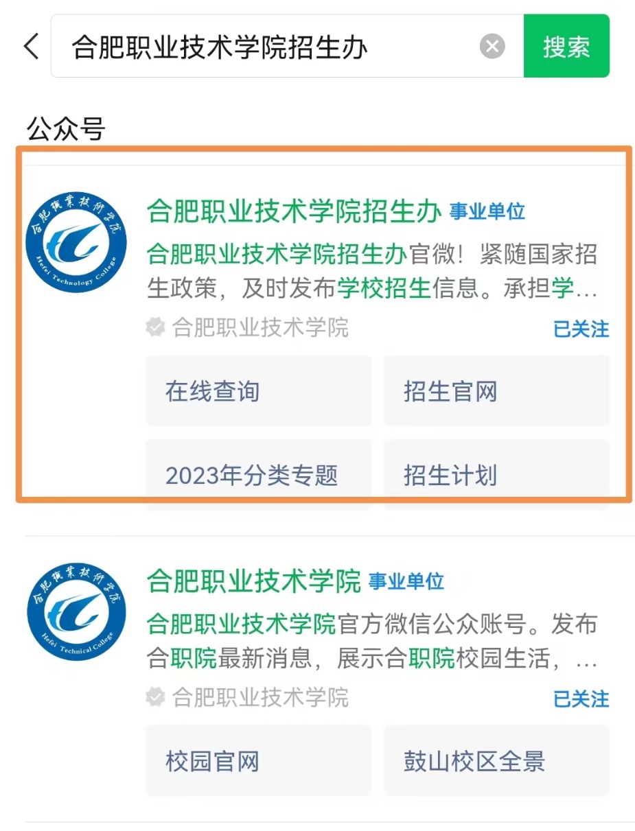 我校分类考试招生信息发布渠道为合肥职业技术学院招生网(zs.htc.edu.cn)和“合肥职业技术学院招生办”微信公众号(微信号:hfzyzsb),其他网站公布的信息均非官方发布,请广大家长和考生仔细鉴别。