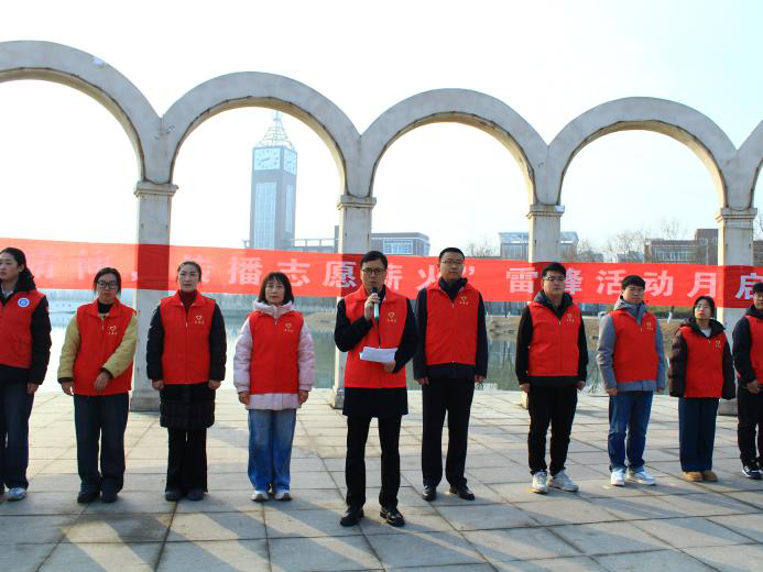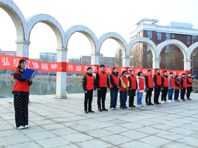 为弘扬雷锋精神,激励广大师生成为雷锋精神的践行者和传承者,3月5日,我校举行了“弘扬雷锋精神,传播志愿薪火”雷锋活动月启动仪式。我校党委副书记吴立军,学生处处长王庆松,校团委书记曹蒙春,学生处副处长孙经纬以及各学院团委书记出席本次活动。校院青年志愿者服务团指导老师及志愿者代表参加本次活动。