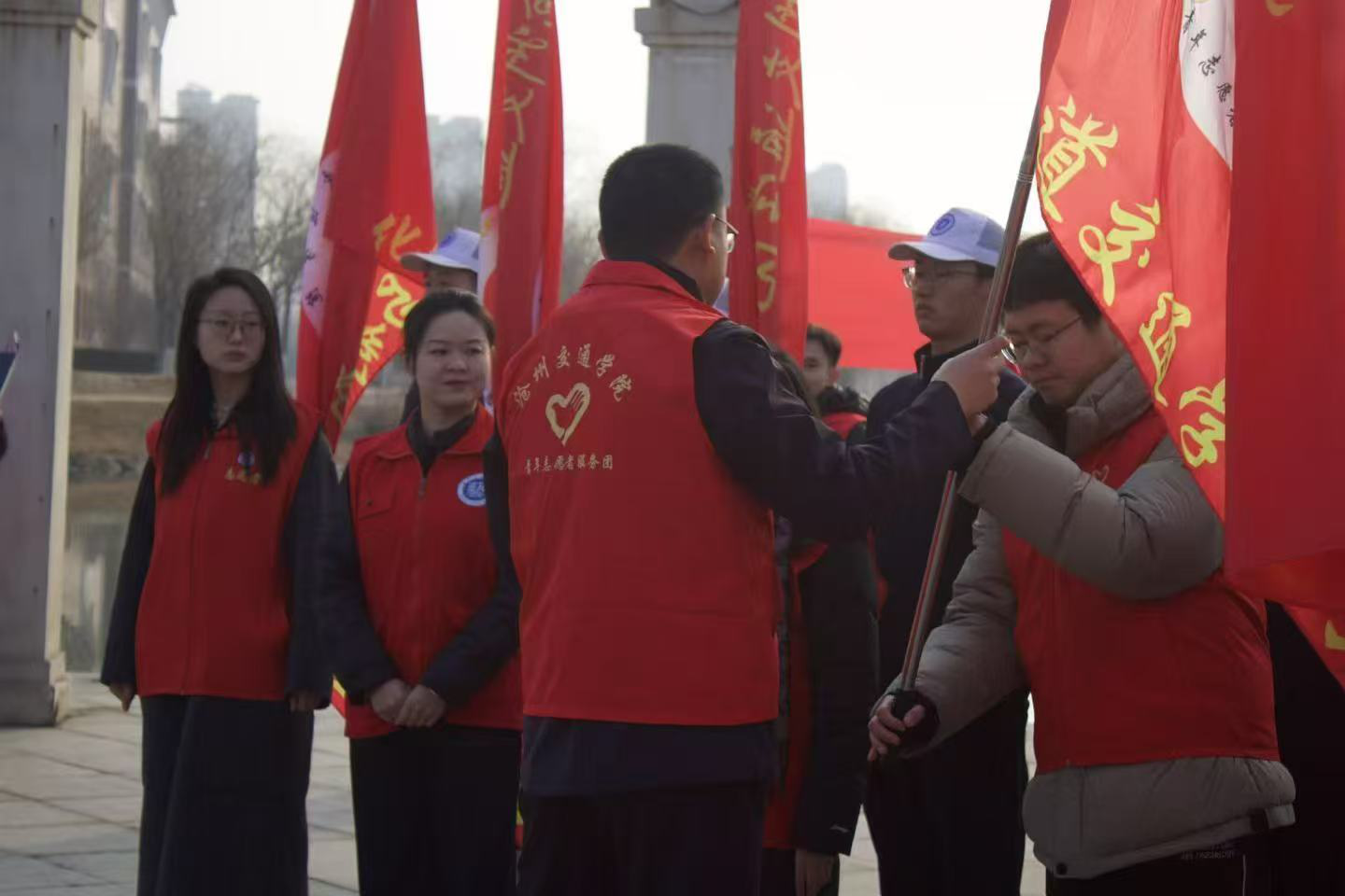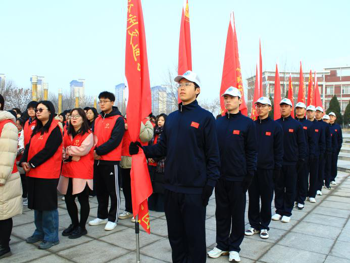 授旗仪式上,学生处处长王庆松将旗帜传递给各学院青团,传递志愿精神薪火。