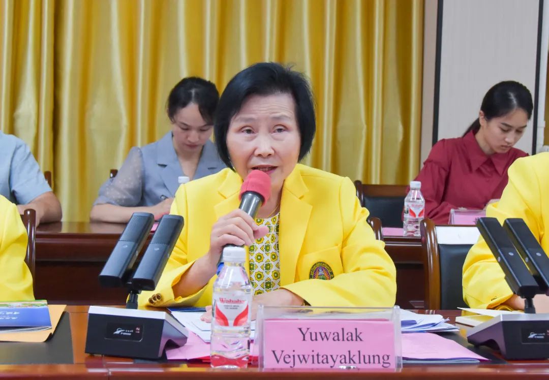 泰国吞武里皇家大学校长尤瓦拉·薇差维他雅克琅对此次合作机会表示感谢,并介绍了随团成员及其职务。