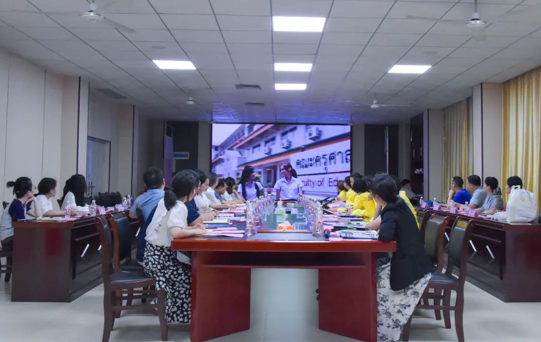 我校党委书记、政府督导专员罗必本,党委副书记、副校长许家瑞,党委委员、副校长兼互联网营销学院副院长黄吉萍出席活动,各二级学院领导以及相关部门教师代表参加活动。国际学院院长助理李燕华主持活动,现场还特别安排了中泰语翻译,确保沟通无障碍。