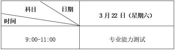 第二轮免试招生专业能力测试时间为:3 月22日,测试地点由招生学校自主确定并通知参加测试的考生。具体测试时间及测试科目安排如下(北京时间):
