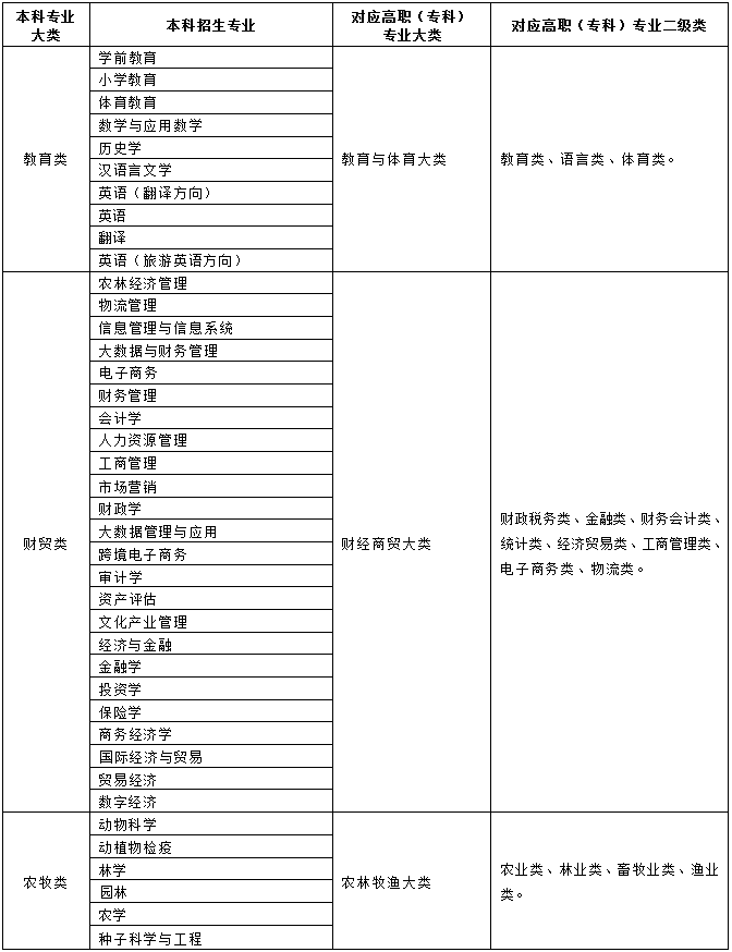 2025年甘肃省高职(专科)和本科专业大类对照表