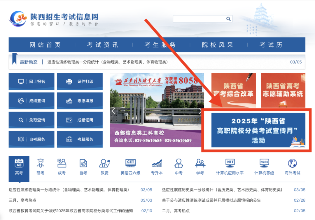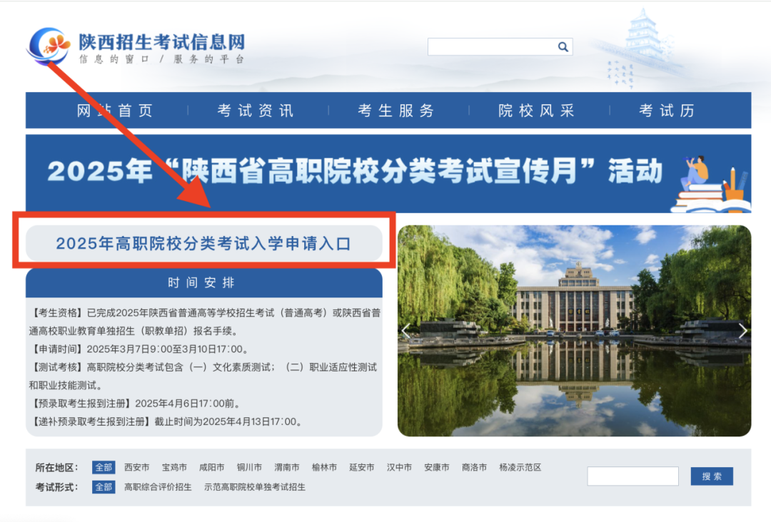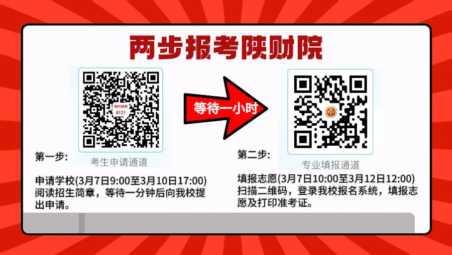 2025年3月7日9:00-3月10日17:00,登录陕西省教育考试院门户网站或陕西招生考试信息网申请我校(招生代码:8121)。