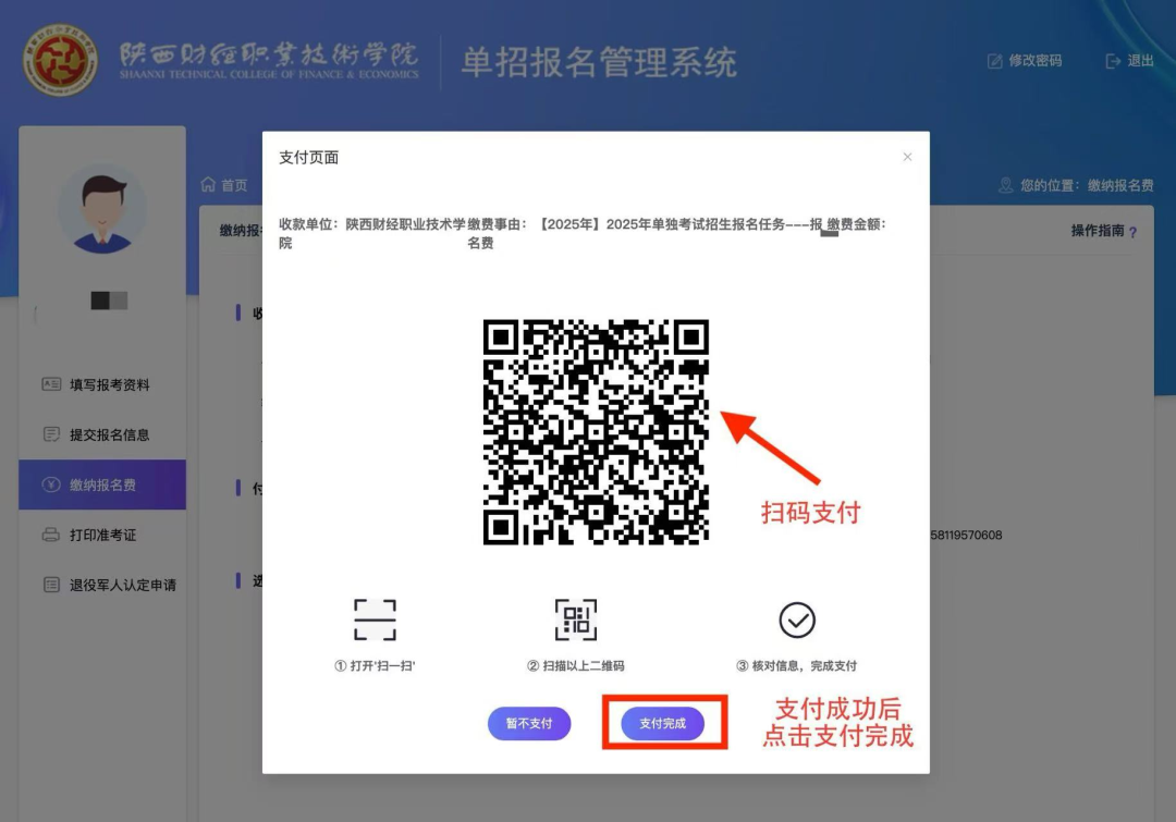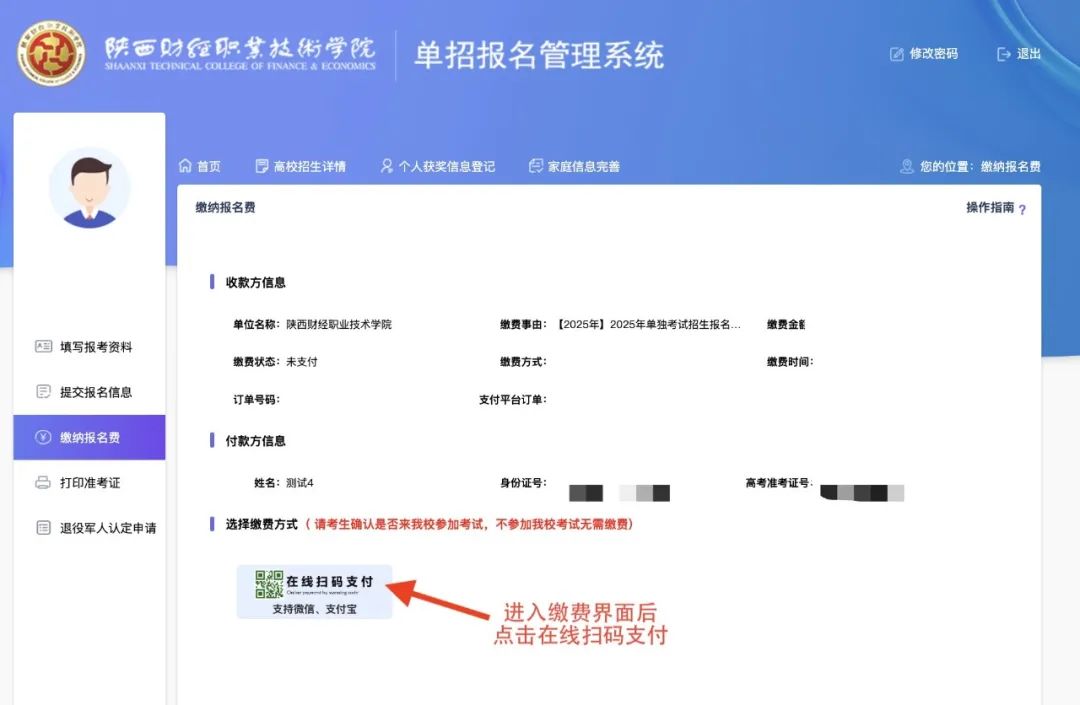 点击“在线支付”,扫描二维码进行支付。