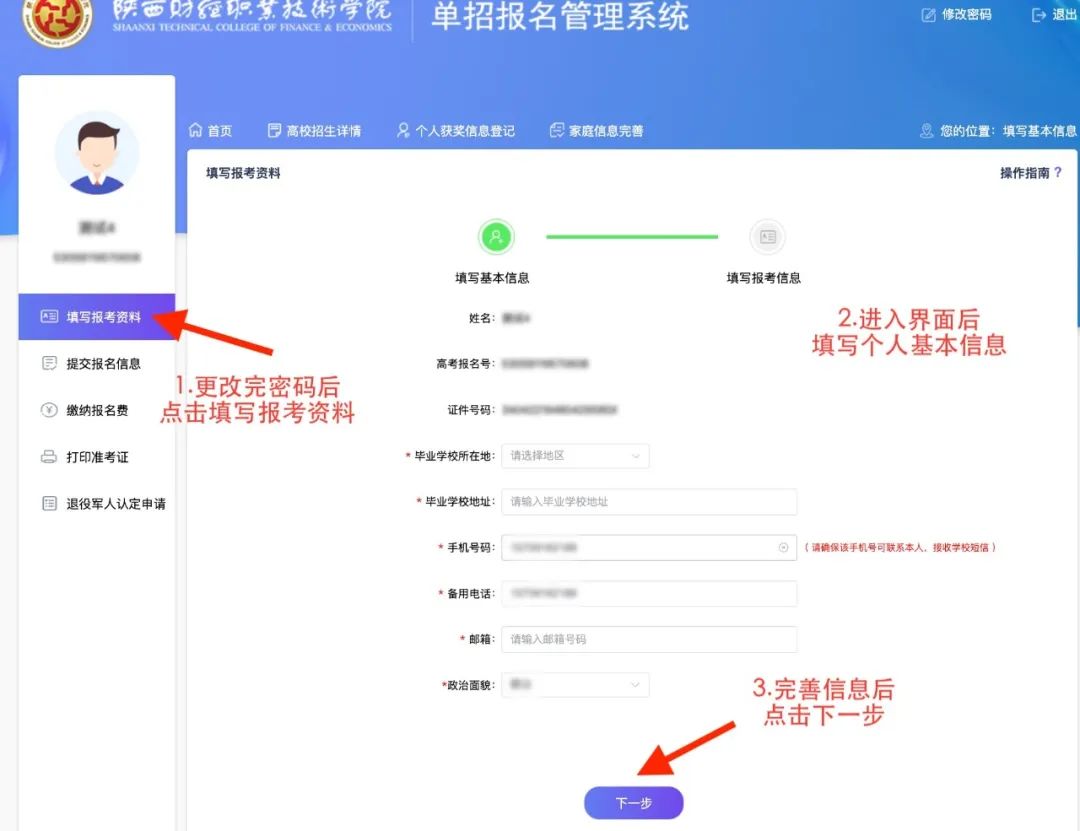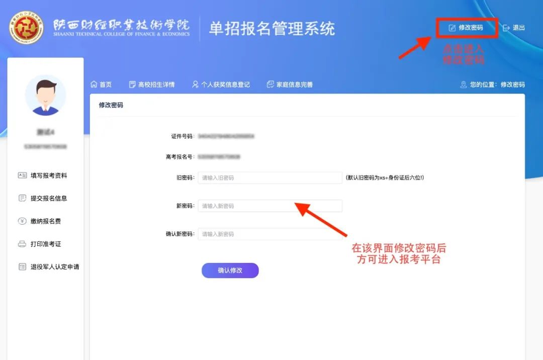 修改初始密码后,进入报名系统。