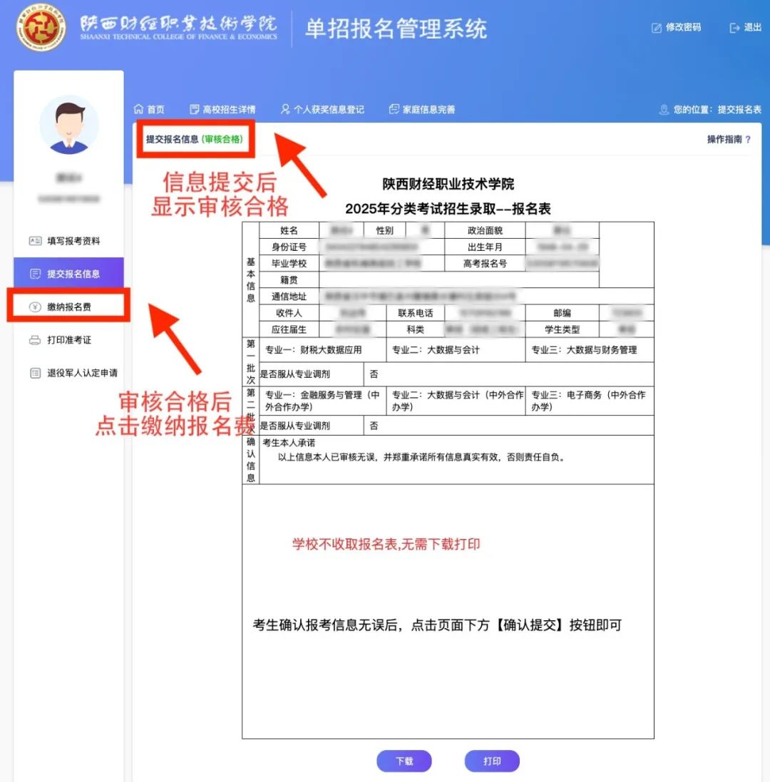 审核合格后,点击左侧缴纳报名费