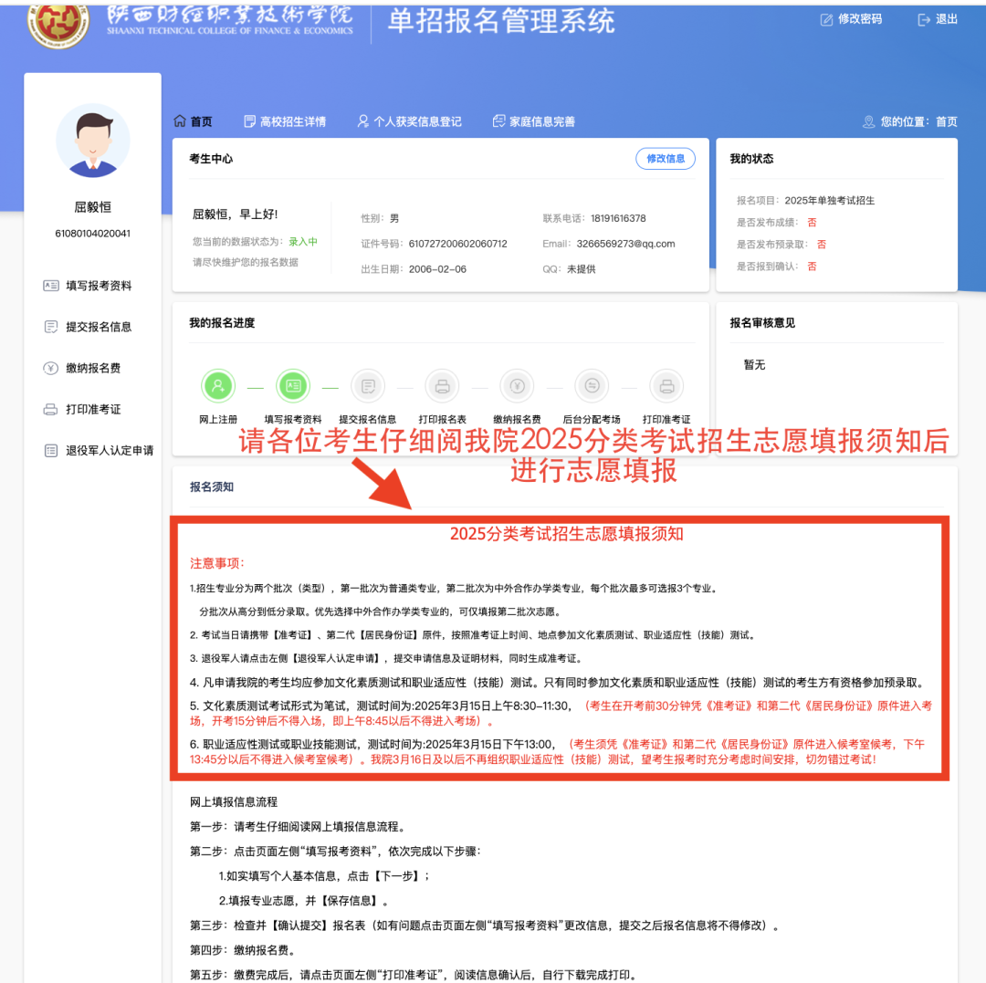 仔细阅读《2025分类考试招生志愿填报须知》