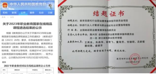 专业教师团队具有丰富教学、实践经验,参与多项教育部、国家邮政局、浙江省教育厅各类科研项目。参与了教育部委托行业职业教育教学指导委员会项目《快递行业人才需求与职业院校专业设置指导报告》。建设有国家级精品在线课程《快递客户服务与营销》、市级精品在线课程《快递法规与标准》。《快递服务概论》课程参加浙江省高校2021年度课程思政教学改革系列活动,“优秀教师说课程思政”微课征选、课程思政典型案例征集。荣获2023年绍兴市高校课程思政优秀案例征集评选活动二等奖。在我校建立了1+X快递运营职业技能等级证书考核站点,提升学生专业技术能力。