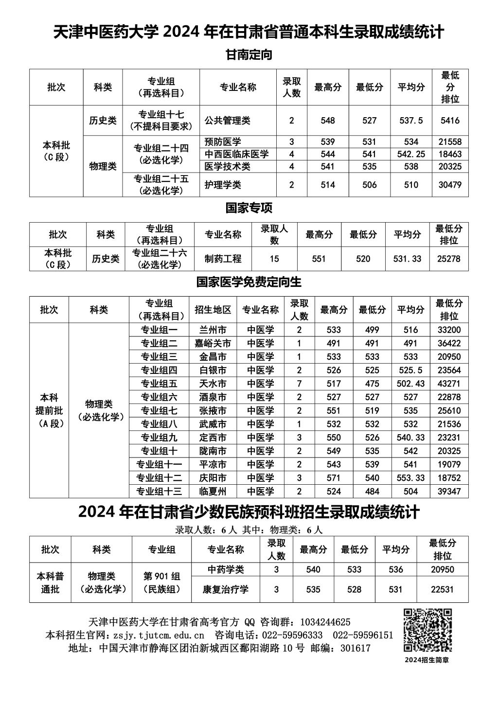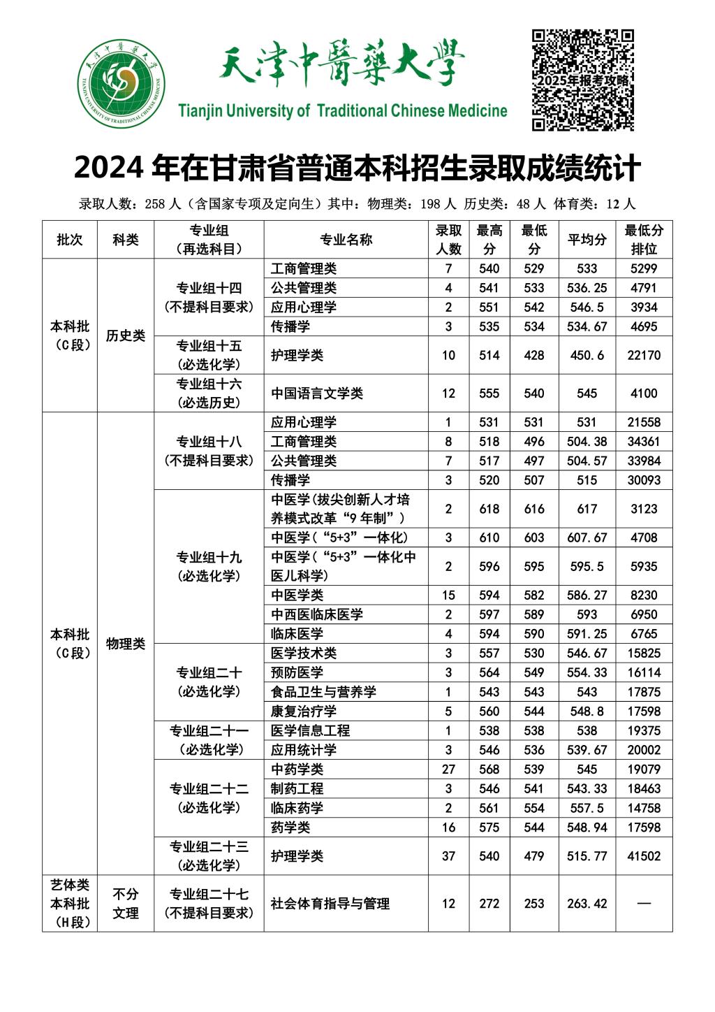 2024年在甘肃普通本科招生录取成绩统计