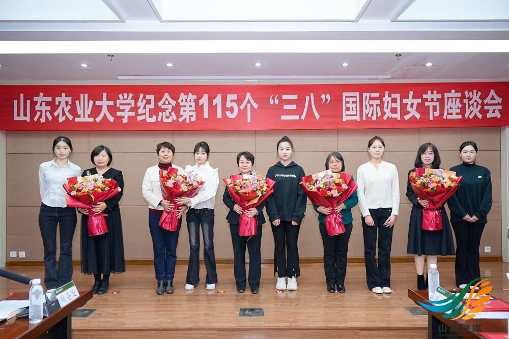 座谈会上,山东省三八红旗手、学校女教授联谊会会长、园艺学院院长段巧红,“巾帼文明岗”获奖代表农学院花生科技创新团队负责人刘风珍、财务处处长张永艳,“巾帼建功先进个人”获奖代表王金花、尹昌美,成长导师代表苏英华作典型发言,表达对教育事业的坚守、对学校发展的祝愿和对美好生活的热爱。学生代表为成长导师献上花束,送上节日美好祝愿。