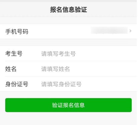 考生填写自己的考生号、姓名、身份证号信息,系统验证考生信息是否正确,是否报考我校。