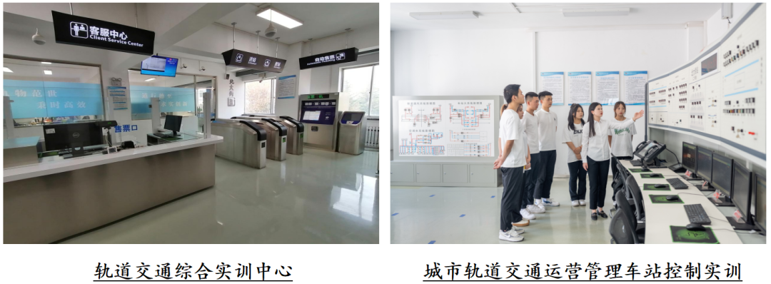 学院依托城市轨道交通和铁路行业,对接轨道交通岗位群建设了职业氛围真实、设备先进的轨道交通实训中心,中心建有OCC调度中心、车站控制、AFC售检票、城轨运营管理、形体训练、站台与轨道、信号基础设备、综合仿真等14个校内专业实训室,设备总值2000余万元。与行业企业多元合作,在企业建立校外实训基地30余个,优良的校内外实训环境和先进的实训设备有力保证了学生职业能力的培养。