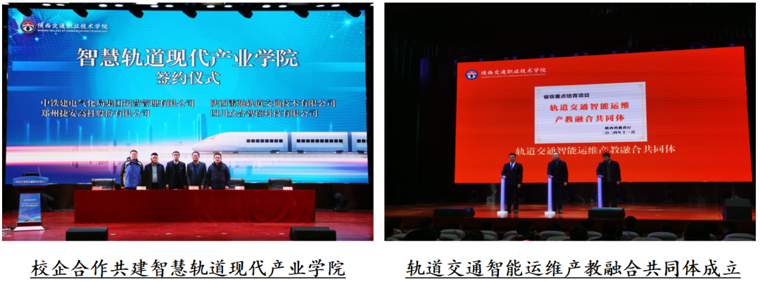 学院与西安市轨道交通集团、陕西省铁路集团、中铁十五局轨道交通运营公司、中铁三局运输公司、中铁建电气化局运营管理公司、杭港地铁、西安全路通号器材研究有限公司等企业深化产教融合、校企合作,共建智慧轨道产业学院、成立产教融合协同育人创新中心,积极开展人才联合培养、订单培养等,不断深化教学改革,提升人才培养质量。