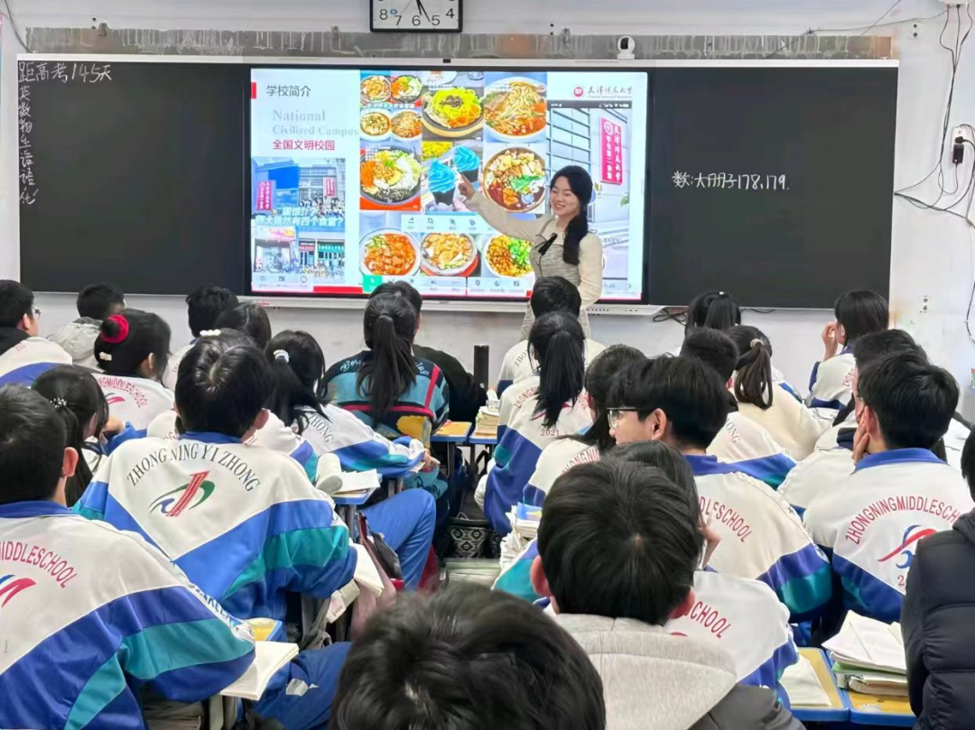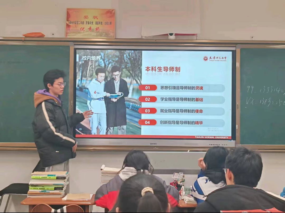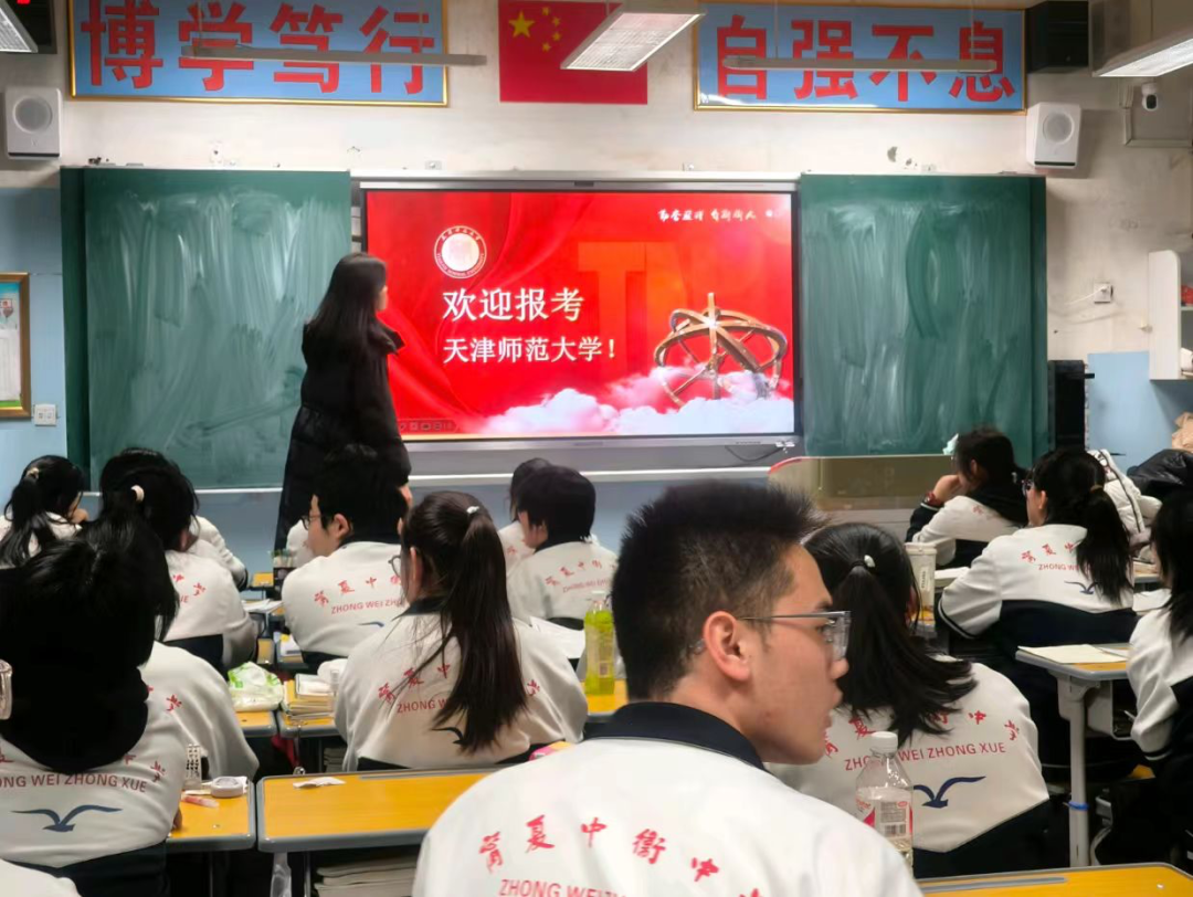 怀着对母校的深厚情谊,我们回访了宁夏中卫中学,向学弟学妹们介绍了天津师范大学,助力他们筑梦前行。宣讲过程中,我们先播放了天津师范大学精心制作的宣传视频,精美的画面、丰富的内容,瞬间吸引了学弟学妹们的目光,让他们对天津师大有了初步的美好印象。随后,我们结合自身在天津师大的学习生活经历,从学校的学科优势、师资力量、校园文化、社团活动等多个方面进行详细讲解。为了让分享更具吸引力,我们穿插讲述了自己在师大参加的各类有趣活动、取得的成长进步,引发了学弟学妹们浓厚的兴趣,现场气氛热烈。