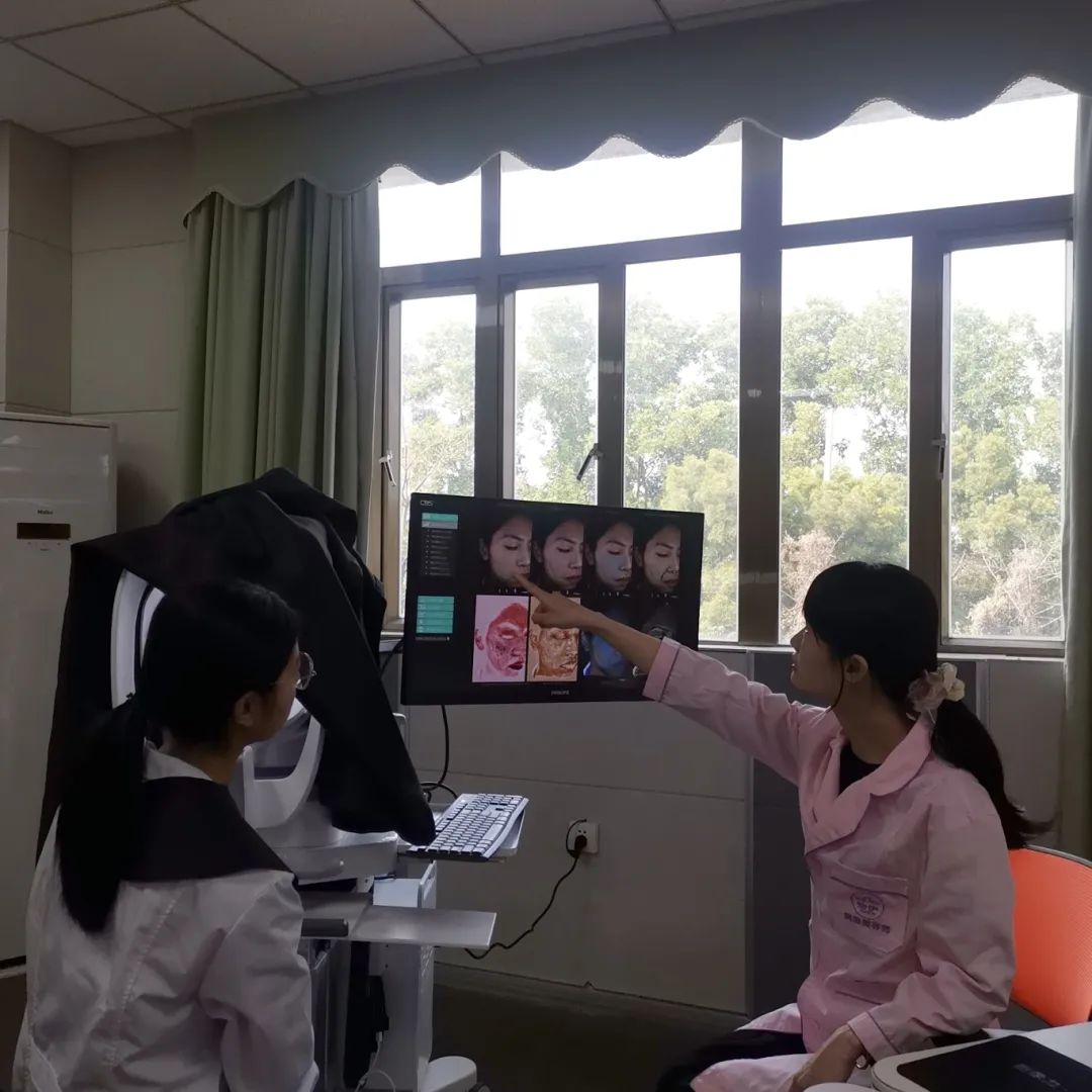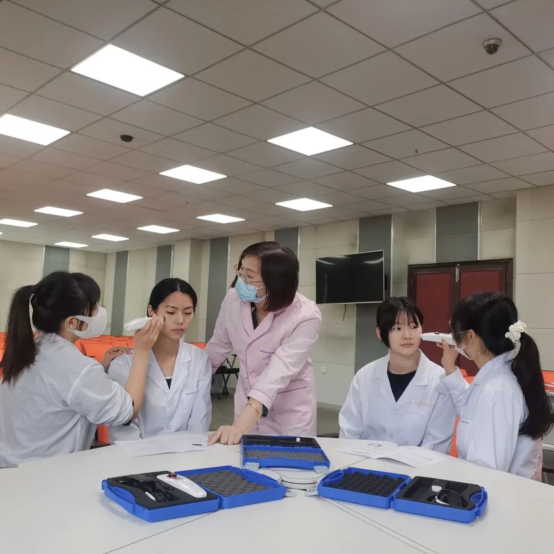 ▲使用Delfin系列功效测试仪进行化妆品功效评价实训