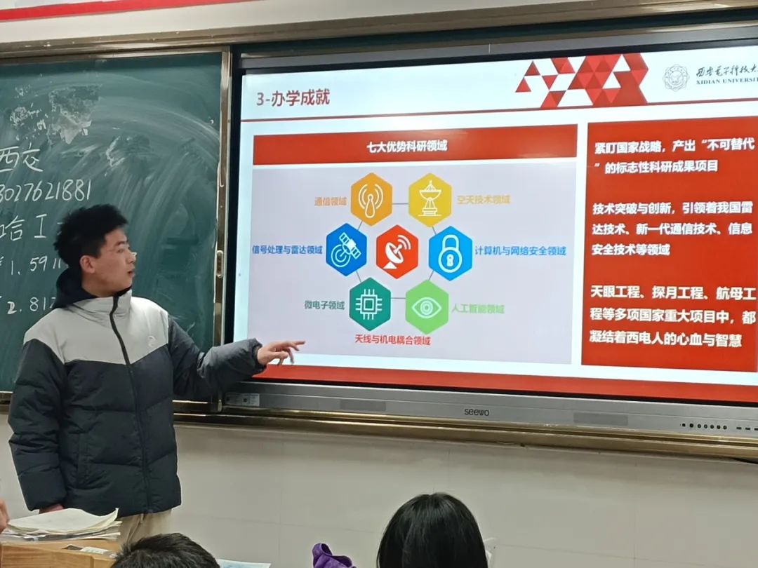 沈同学:此次宣讲活动不仅是一次信息的传递,更是一次情感的交流。通过与母校师生的深入互动,我们不仅成功展示了西电的学术魅力与校园文化,也为吸引更多优秀学子加入西电大家庭做出自己的一份努力。