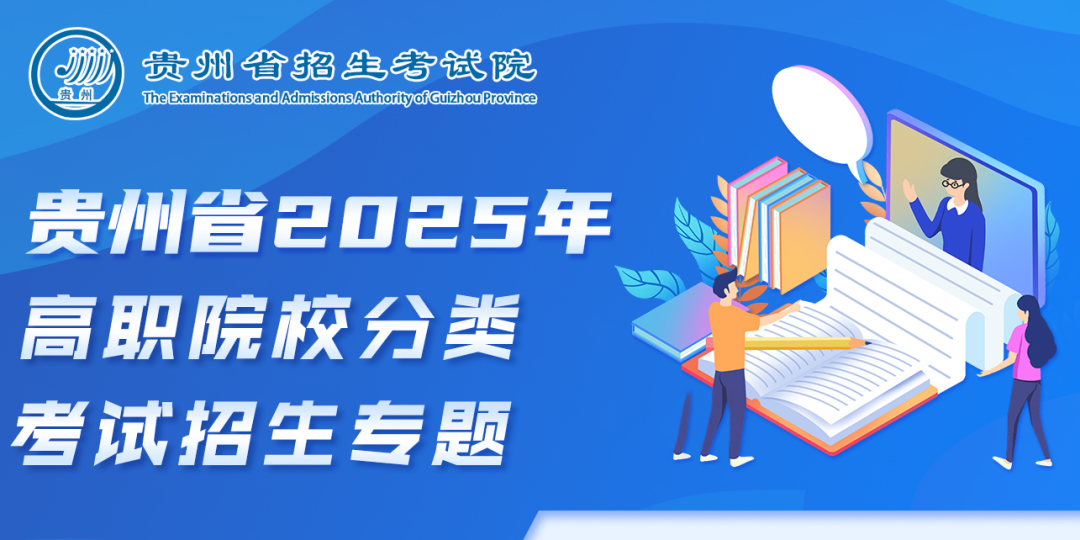 登录贵州省招生考试院官方网站(http://zsksy.guizhou.gov.cn/)点击“贵州省2025年高职院校分类考试招生专题”或点击文末左下角“阅读原文”,即可一站式获取高职分类考试政策、院校招生信息,轻松完成查分、志愿填报与录取查询。