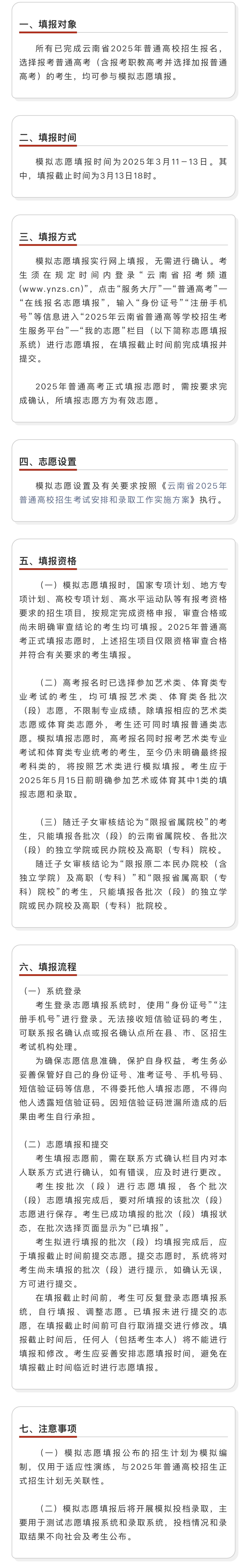 云南省2025年普通高校招生适应性演练模拟志愿填报考生须知