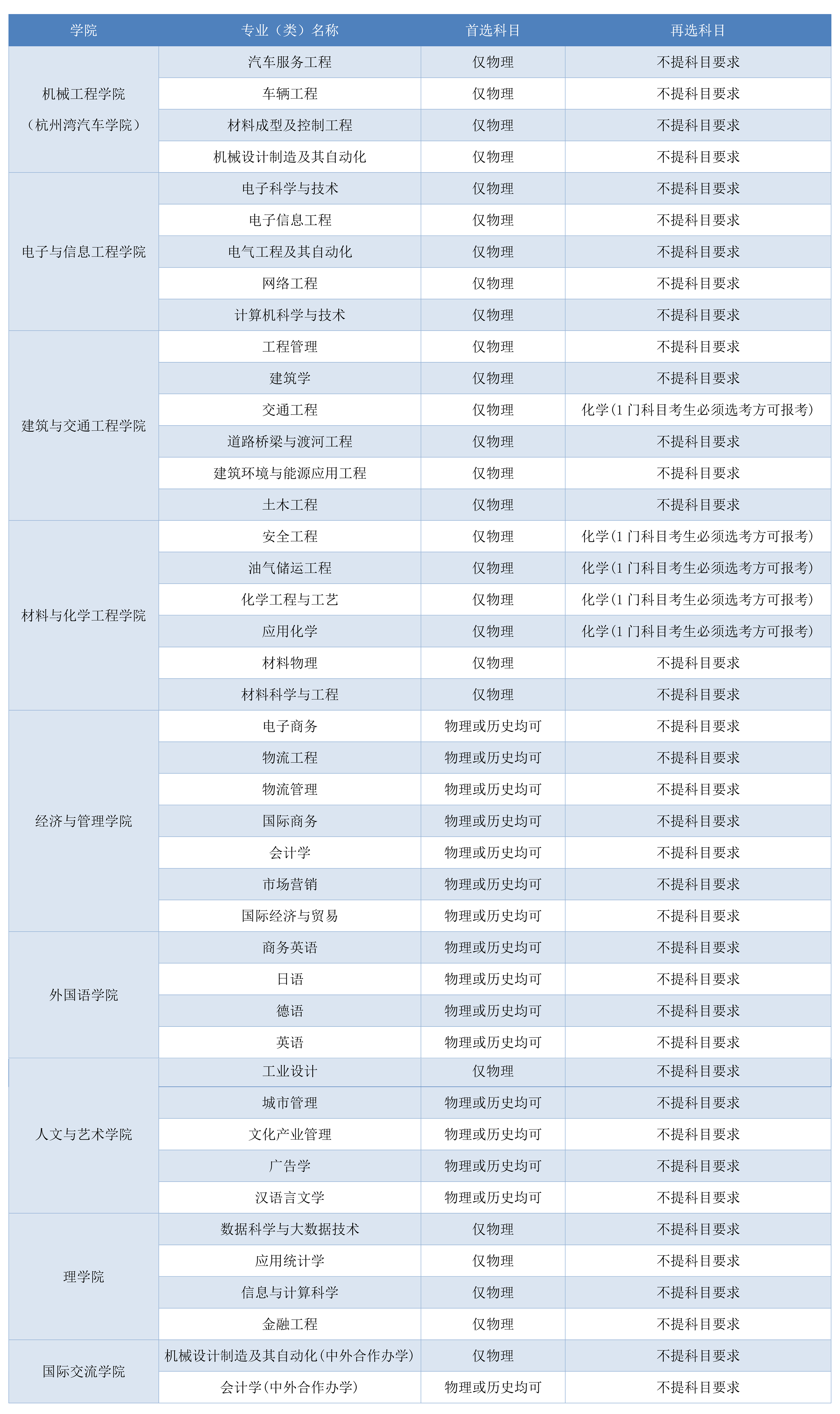 2021年在"3+1+2"模式高考改革省份招生专业选考科目范围