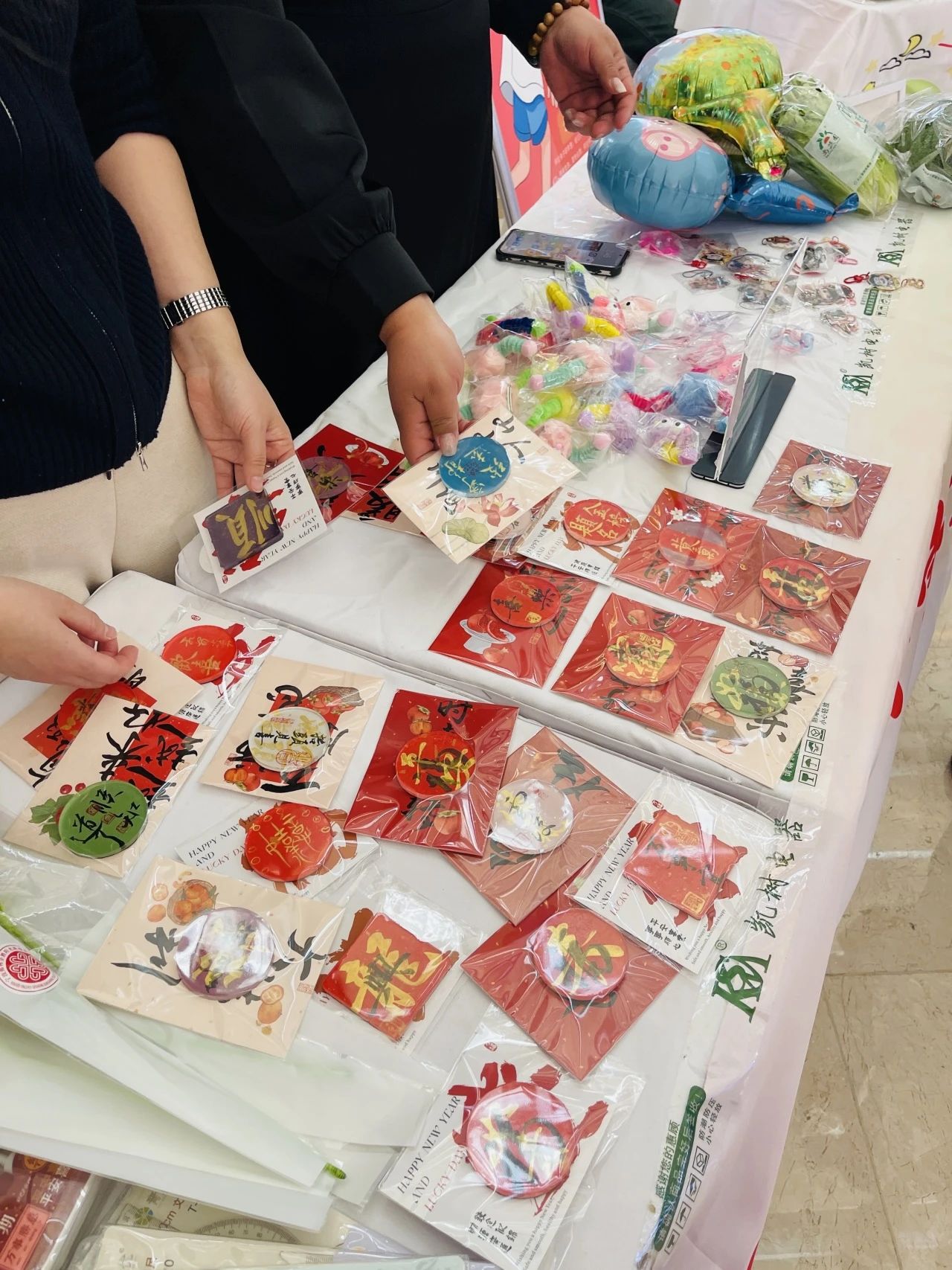 活动现场,墨香与药香交织。书法冰箱贴上,“厚德载物”“自强不息”等字迹苍劲有力,传递文化力量;中药香囊内,艾草、薄荷清香萦绕,兼具实用与艺术价值。“每一针一线都饱含心意!”我校志愿者中药学院周爱珍老师边缝制边介绍。食品学院 “直播团队” 的同学们全程参与其中,进行了全场直播。他们手持设备,灵活穿梭在人群间,用镜头精准捕捉每一个温暖瞬间,无论是师生们精心制作手工艺品的专注神情,还是市民们踊跃参与义卖的热情场景,都通过直播画面生动呈现。短短三小时,义卖品全部售罄,筹得善款将悉数捐赠至助残基金,用于帮扶残障群体技能培训。