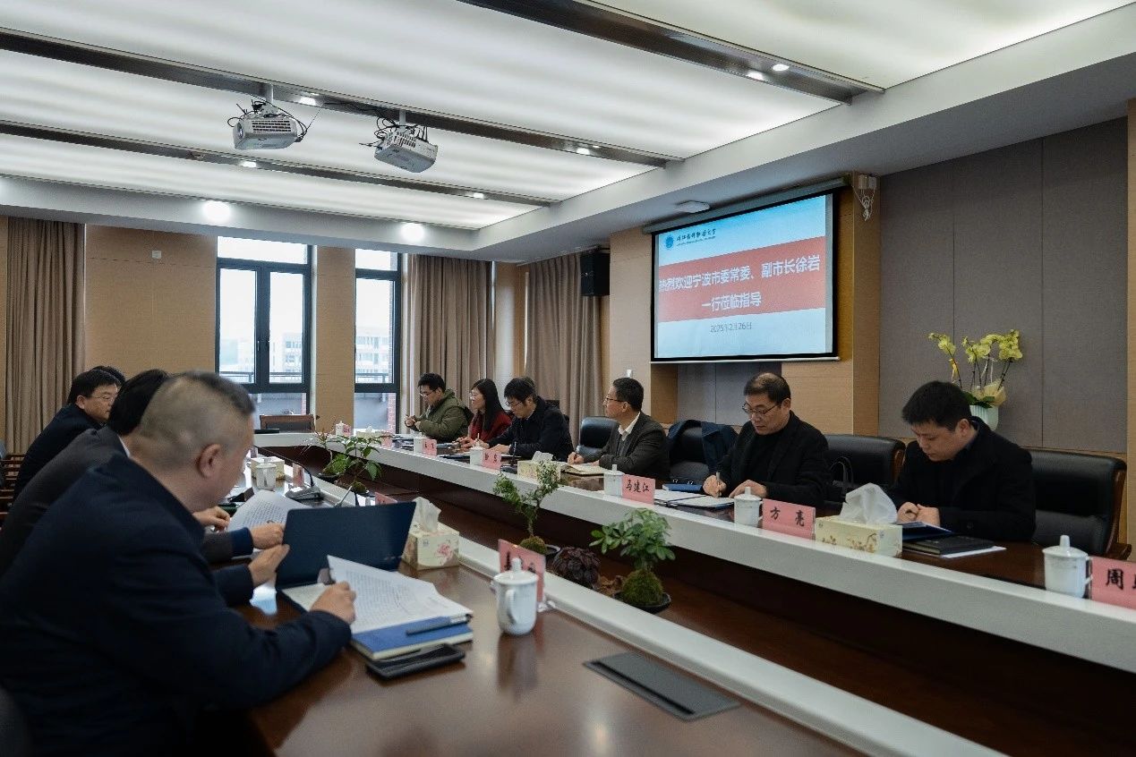 2月26日下午,宁波市委常委、副市长徐岩来校调研指导工作。市政府办公厅副主任马建江,市教育局党委委员、副局长王飞,市政府办公厅政策调研处处长方亮,市教育局职业教育处副处长钱科娜等参加调研。校长娄小娥,纪委书记徐军伟,党委副书记沈黎新、韩忠培,副校长姜宇国,党委委员、办公室主任张佳佳等校领导班子成员陪同调研。