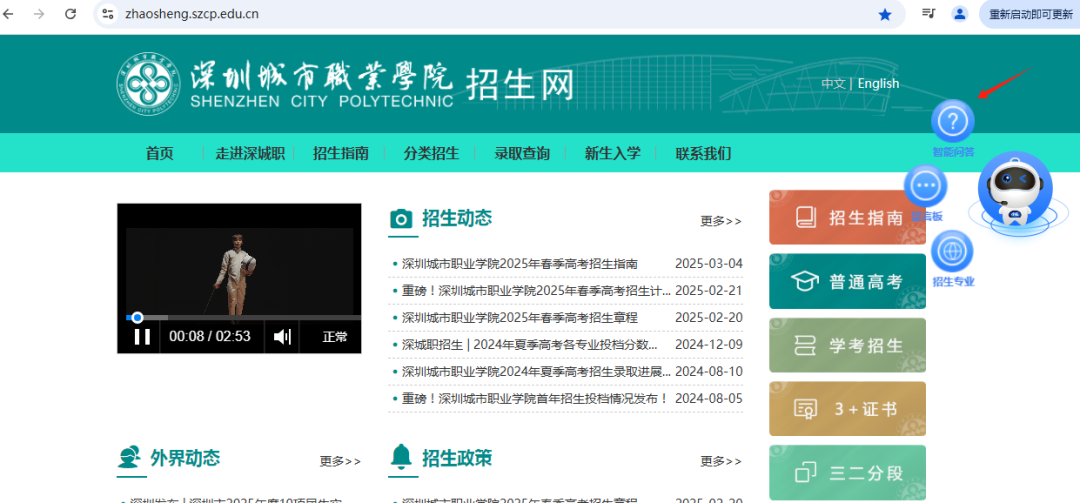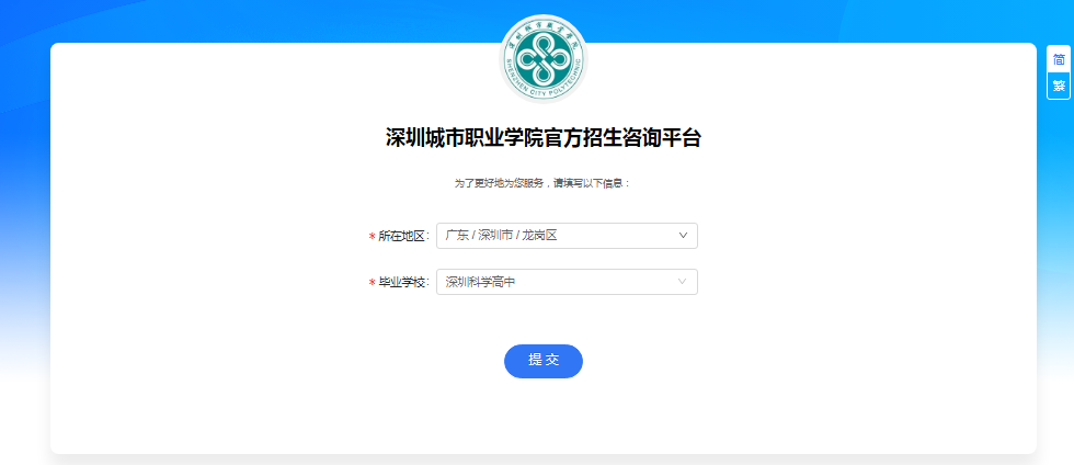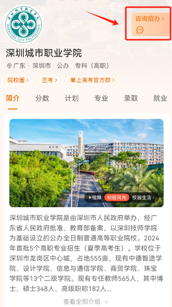 登录深城职招生官网(网址:https://zhaosheng.szcp.edu.cn),点击右侧“智能机器人小E”,在登录界面完善基础信息后即可在线咨询或留言。(操作详情见下图)