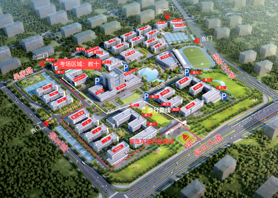 (南昌市红谷滩区复兴大道西3999号)考场区域:10号教学楼(教十,见上图)请考生提前穿着运动服、运动鞋进入考场。