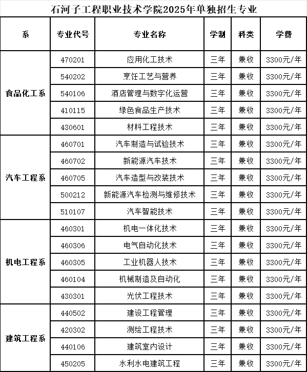 详情请关注新疆招生网、学院官网、学院微信公众号、招生咨询QQ群发布的《2025年石河子工程职业技术学院单独招生章程》