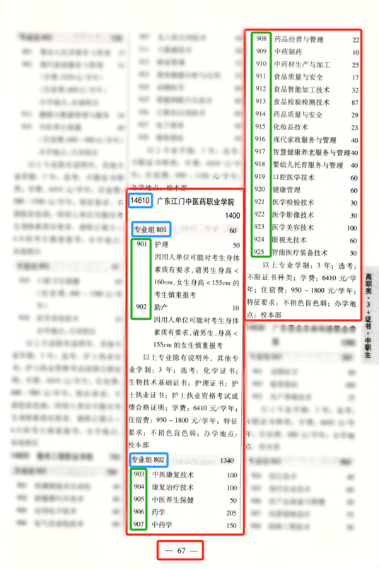 “3+证书”志愿填报,请查看《广东省2025年普通高校春季高考统一招生目录(中职生版)》第67页。