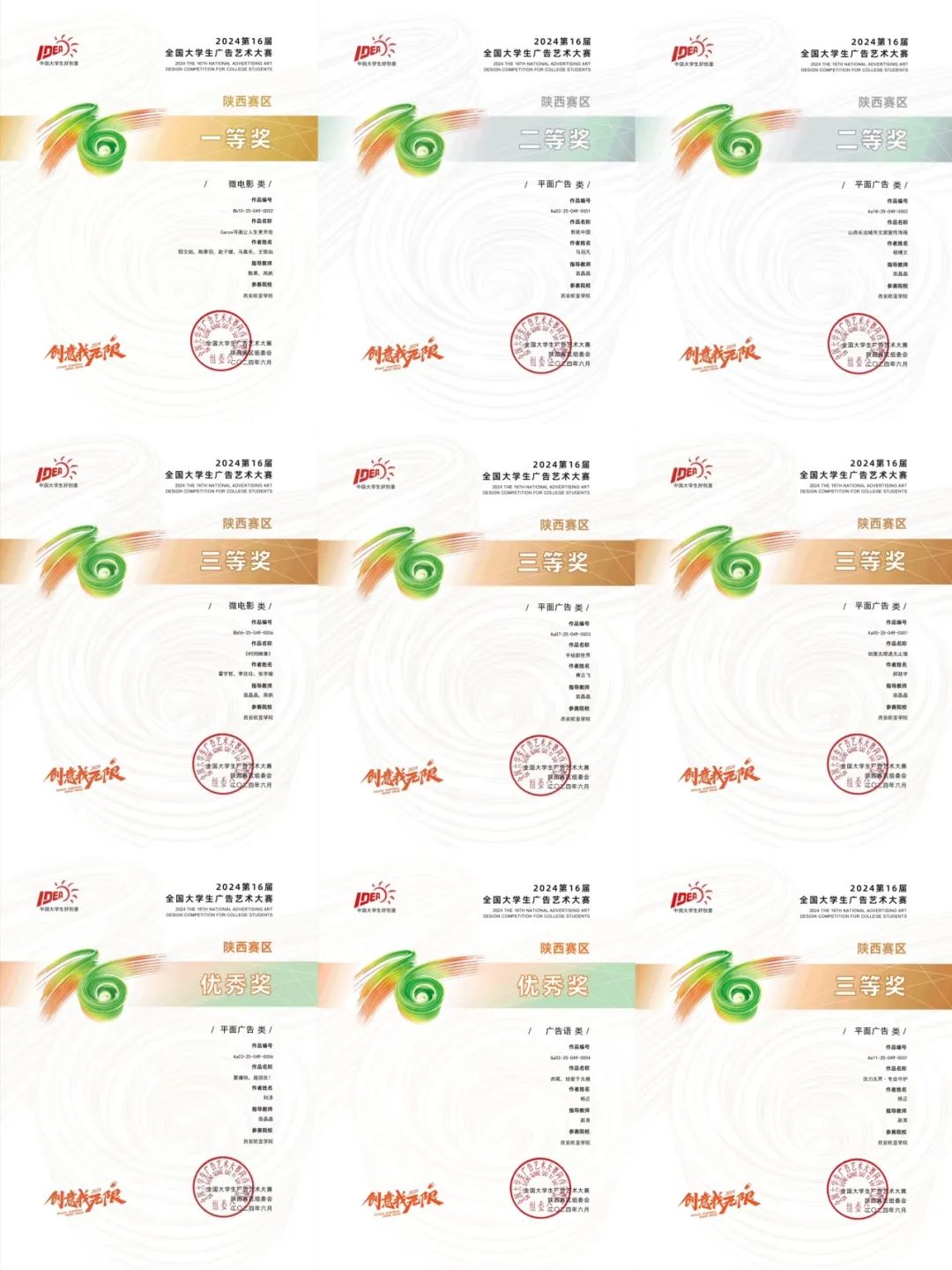 学生在第十六届全国大学生广告艺术大赛陕西赛区获奖○产教融合,创新培养模式:专业与本地知名媒体、陕西省新华出版集团、云享科技等知名媒体、上市企业展开合作,共建课程、共享实验实训资源,并引进企业真实项目,依托项目和工作室开展实践教学,学生能够在真实项目中获得锻炼,提升实践能力与学生职业发展竞争力。