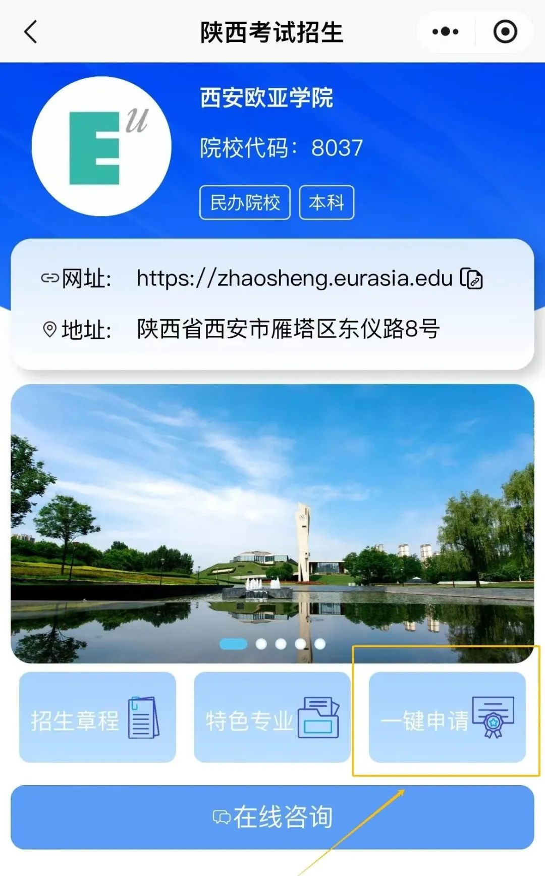 方式三:在“陕西考试招生”小程序中点击“一键申请”