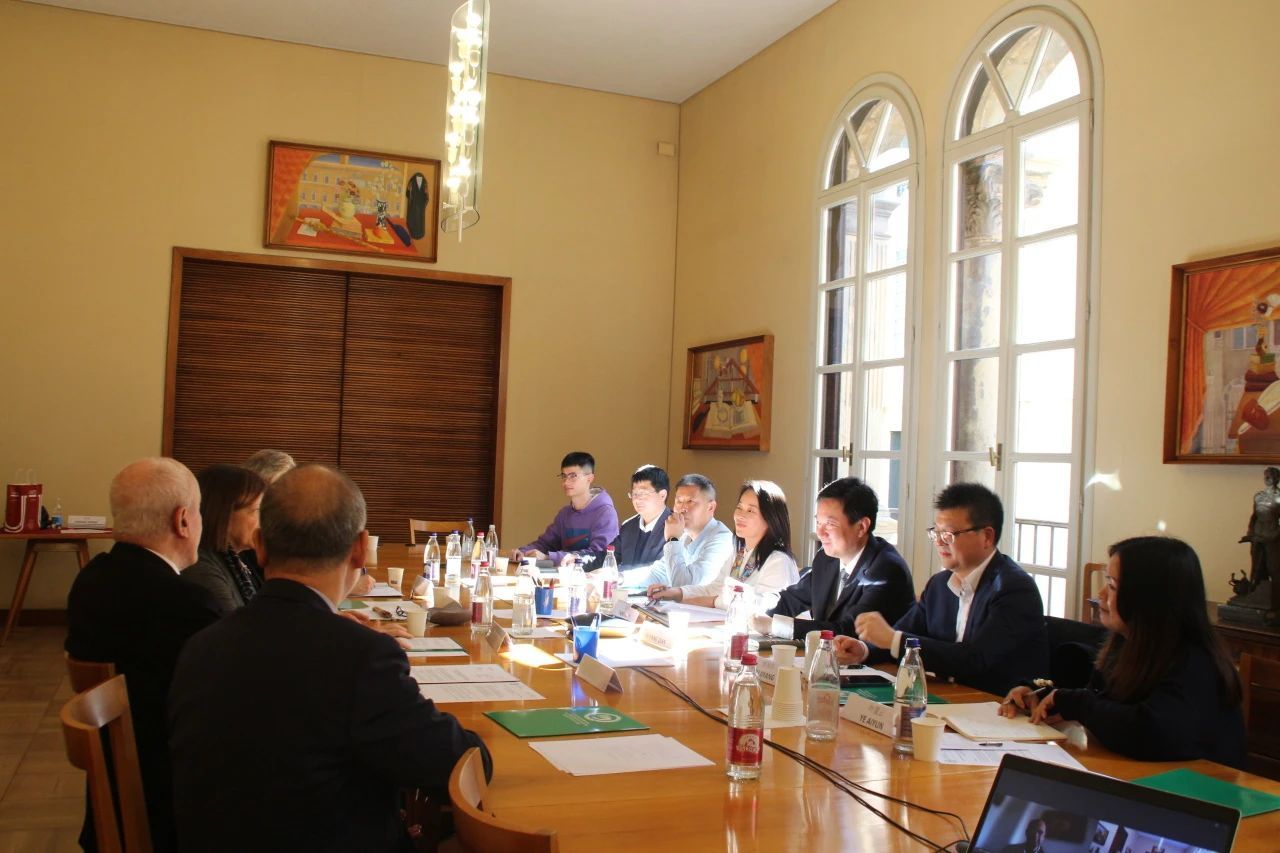 3月4日,代表团与意大利帕多瓦大学副校长巴索教授及双方理事会成员召开了帕多瓦大学孔子学院理事会会议,就加强两校的交流与合作及孔子学院的建设进行了深入探讨。理事会审议并讨论通过《意大利帕多瓦孔子学院的章程》,双方代表签署共建帕多瓦大学孔子学院合作协议,共同研讨2025年工作计划和专项工作,为孔子学院后续发展提供了工作思路。理事会成员均认为,在现有两校合作的良好基础上,要充分发挥孔子学院连接两校教师交流、人才培养、学生交换、科研合作等桥梁和平台作用。