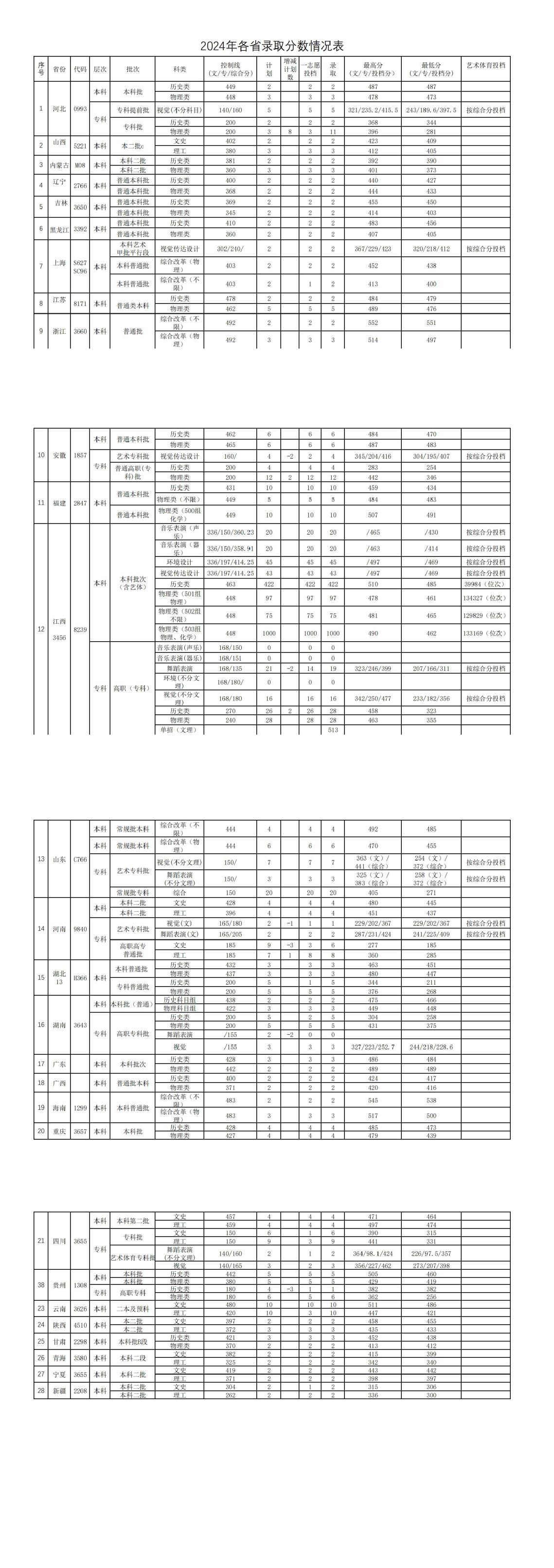 2024年的投档录取分数线是多少?