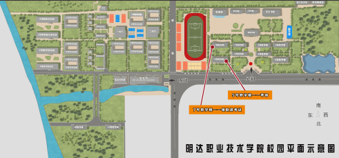 明达职业技术学院5号楼(考场),7号楼(领取准考证)
