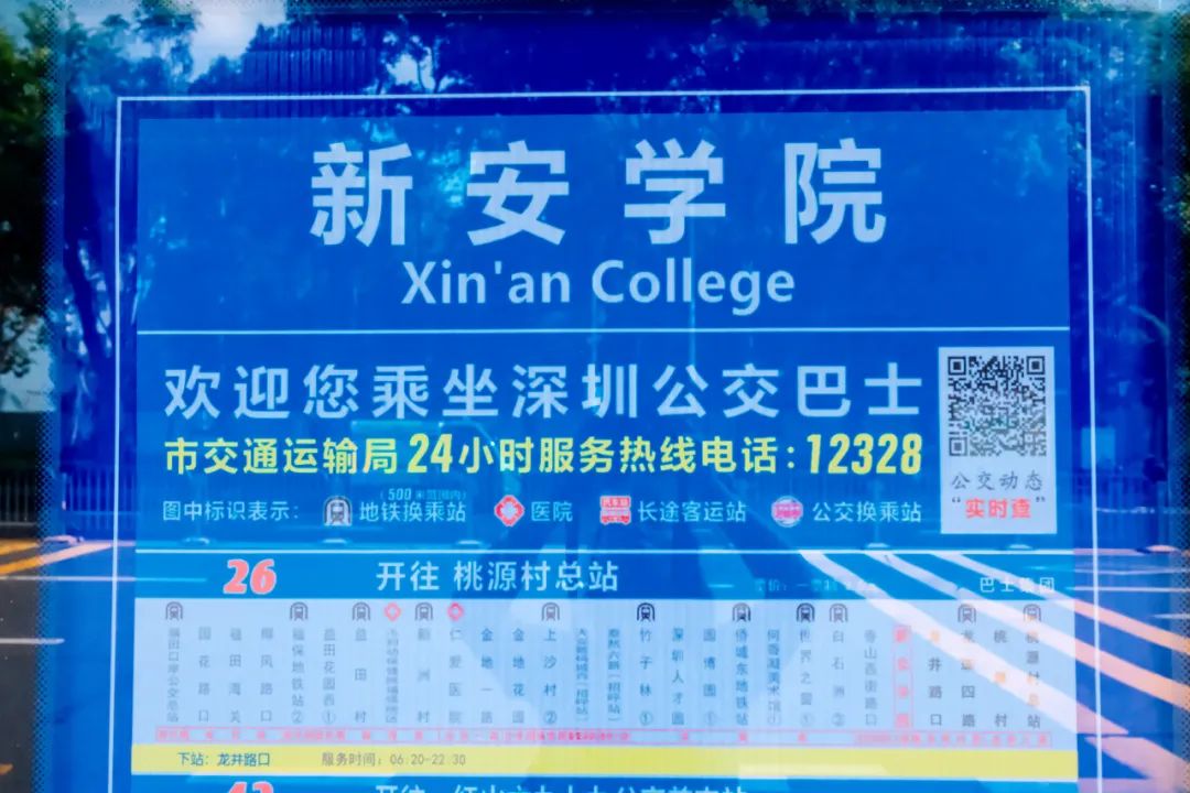 校周边地铁线路:1号线(白石洲站);2号线(世界之窗站);7号线(龙井站)。出地铁口即有公交车站,可直达我校门口。