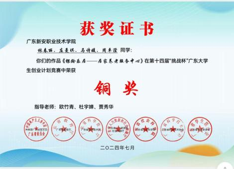 学院学生荣获广东省专业技能大赛获得一等奖、二等奖等奖项,获得广东大学生创业计划竞赛“挑战杯”银奖、铜奖。在多项技能竞赛中,创造佳绩,为院争光。2024年学院学生获校级以上荣誉400余项。