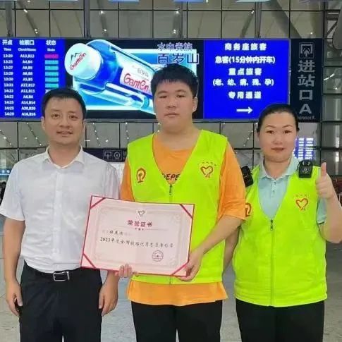 张展鸿同学荣获全国铁路优秀志愿者称号,为广东省高职院校唯一获此项荣誉的志愿者。