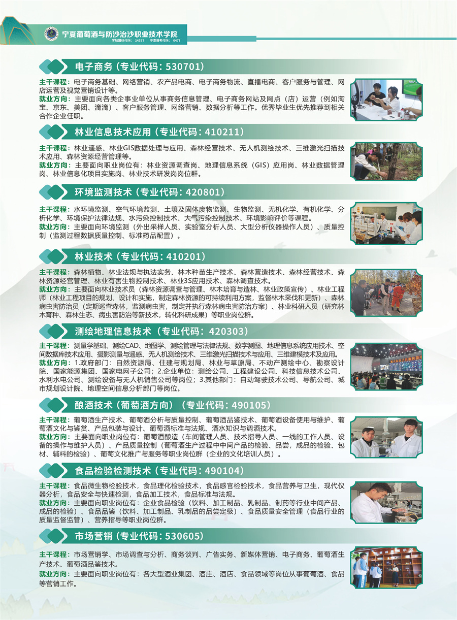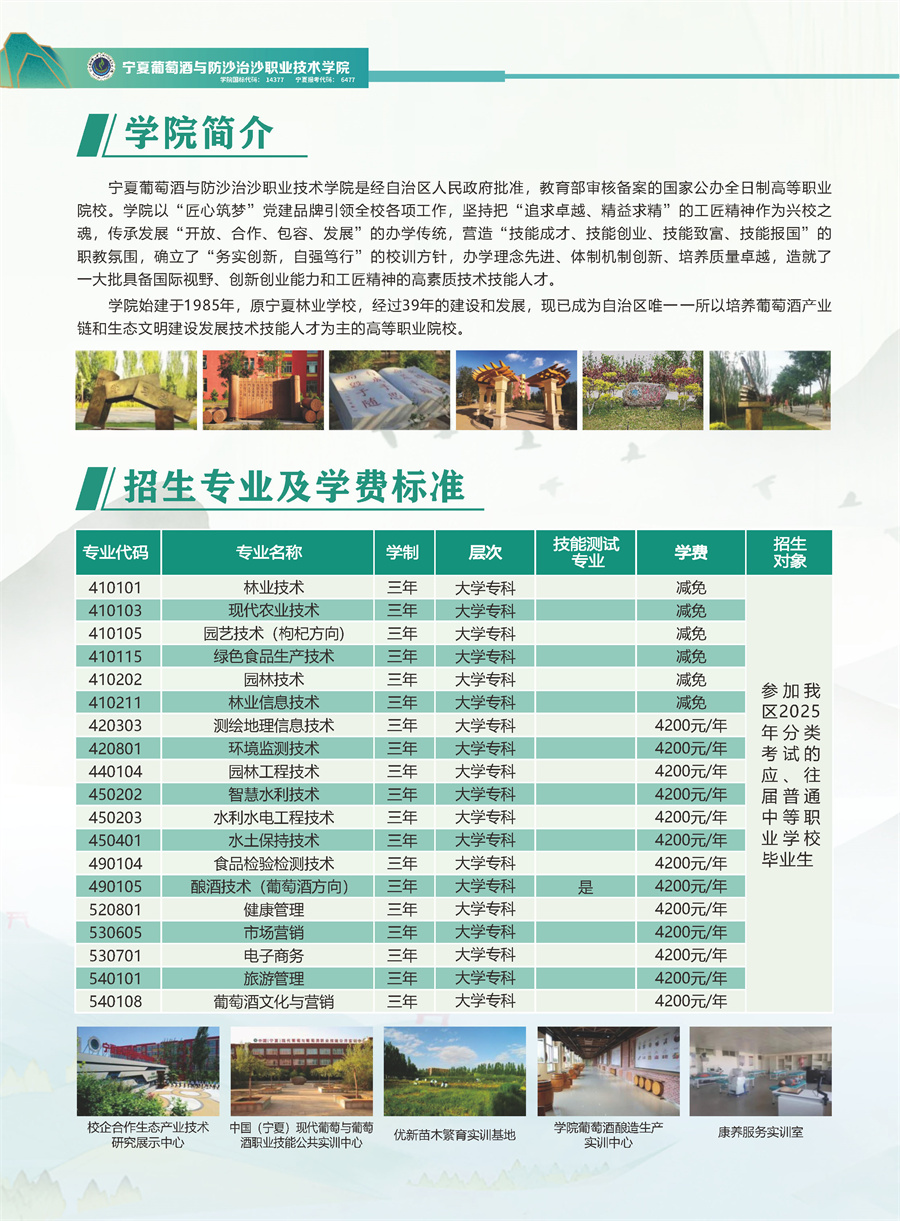 宁夏葡萄酒与防沙治沙职业技术学院2025年分类考试招生简章