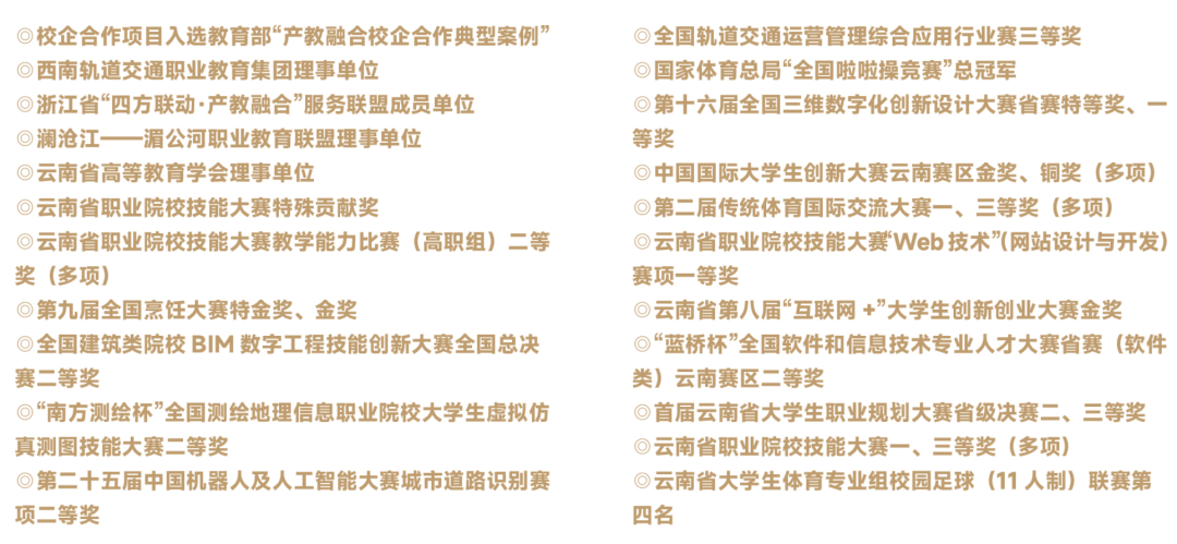云南理工职业学院是2019年经云南省人民政府批准、教育部备案成立,具有独立颁发学历文凭资格的全日制普通高等职业院校。学校以新工科引领专业建设,形成理工科专业为主,满足行业、企业及其社会需求的多元专业结构。重点打造新能源汽车、体育与教育、建筑工程、信息技术、城轨与机电、财经商务、新能源电力工程七大专业集群。组建工程技术学院、信息工程学院、轨道交通学院、体育与教育学院、新能源汽车学院、新能源工程技术学院、天度数字商务产业学院、烹饪产业学院八个专业学院。