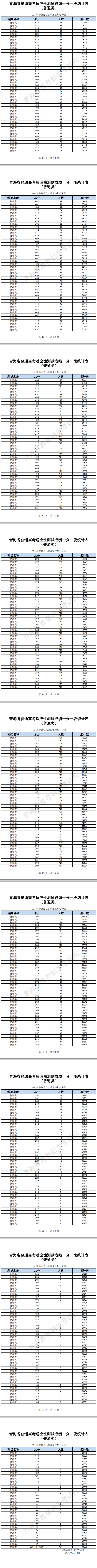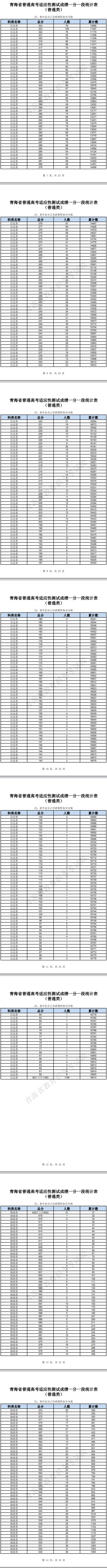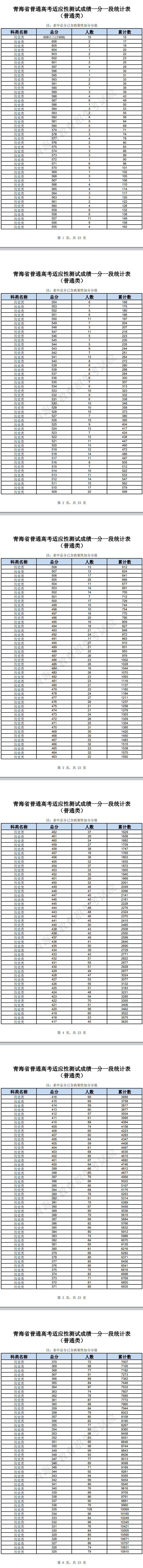 青海省高考综合改革适应性测试成绩一分一段统计表(普通类)