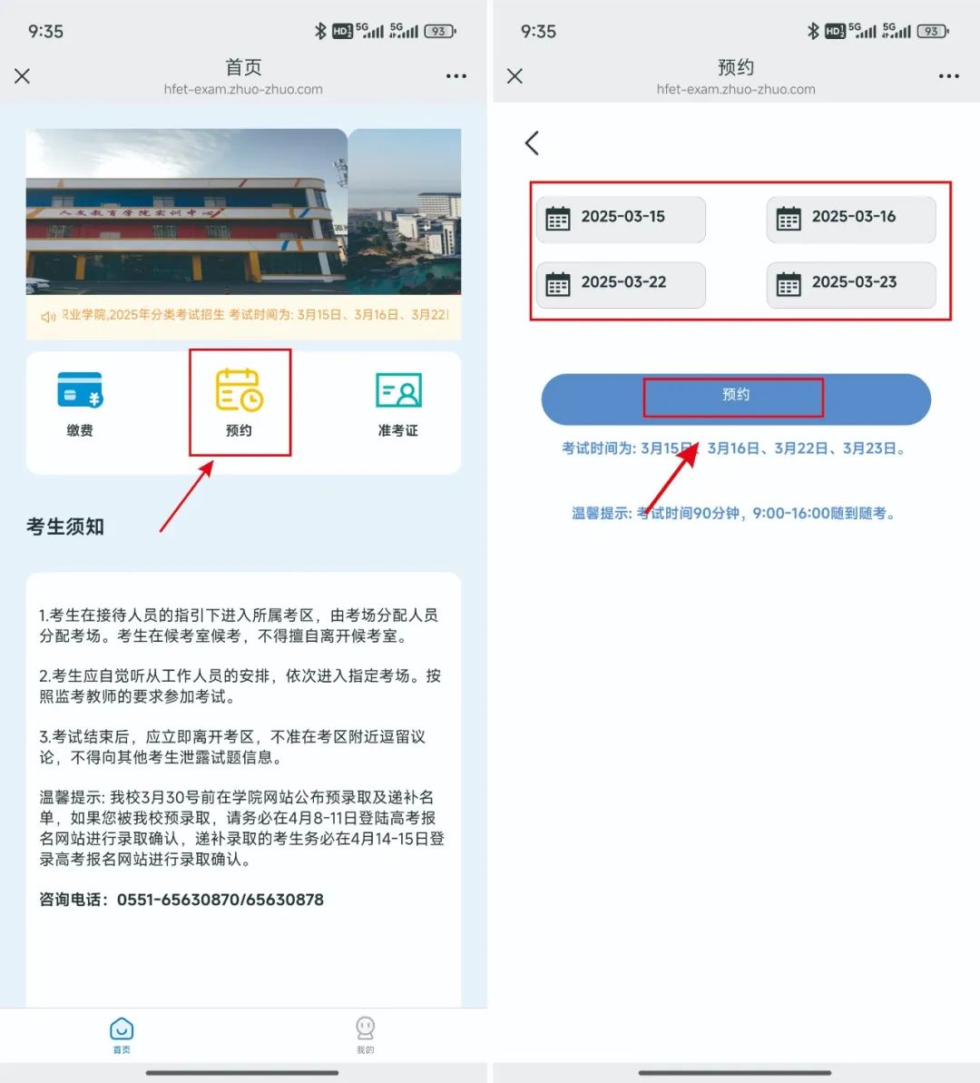 支付完成将跳转至安徽农金页面,此时需退出并重新进行第二、第三步操作,来到准考证打印系统首页。点击“预约”按钮进入选择时间页面,考生合理安排自己的考试时间,勾选并点击“预约”,(如有改动可点击“更改预约”完成重新预约)点击“下一步”即可查看自己的准考证并下载打印。