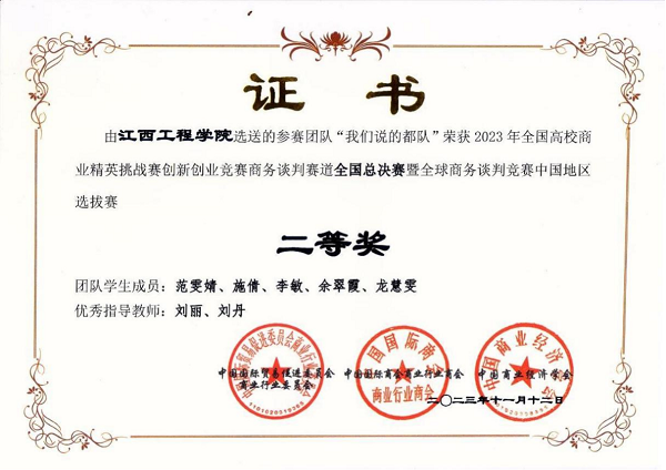 商务谈判是一项非常重要的技能,对于未来的商业发展和职场生涯至关重要。我校参赛队伍在比赛中展现出了高超的商务谈判能力,凭借对商业环境的深入了解和敏锐的洞察力,成功地解决了多个商业难题。队员们的出色表现得到了评委们的高度评价和认可,最终荣获一等奖。