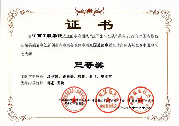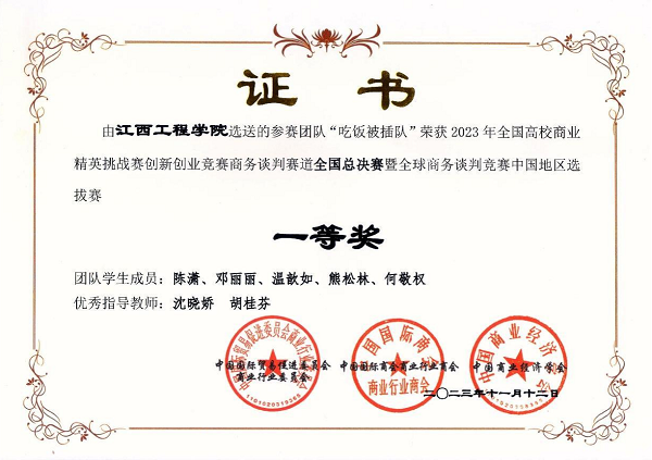 近日,2023年全国高校商业精英挑战赛创新创业竞赛商务谈判赛道全国总决赛暨全球商务谈判竞赛中国地区选拔赛落下帷幕。此次比赛聚集了来自全国各地的优秀学子,共同角逐商业精英的荣誉。经过激烈的竞争,我校代表队凭借出色的表现,荣获商务谈判赛道全国总决赛一等奖。