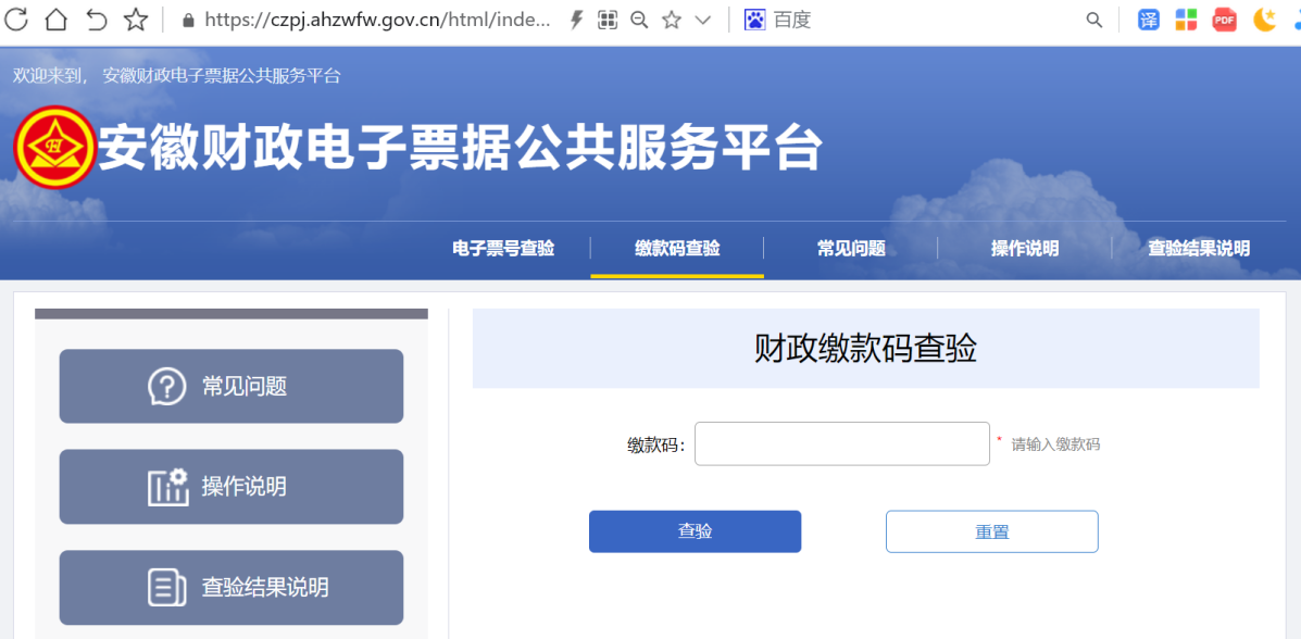 ①:如需电子票据可百度搜索进入“安徽省电子票据公共服务平台”或直接输入网址https://czpj.ahzwfw.gov.cn/html/index.html#/home。