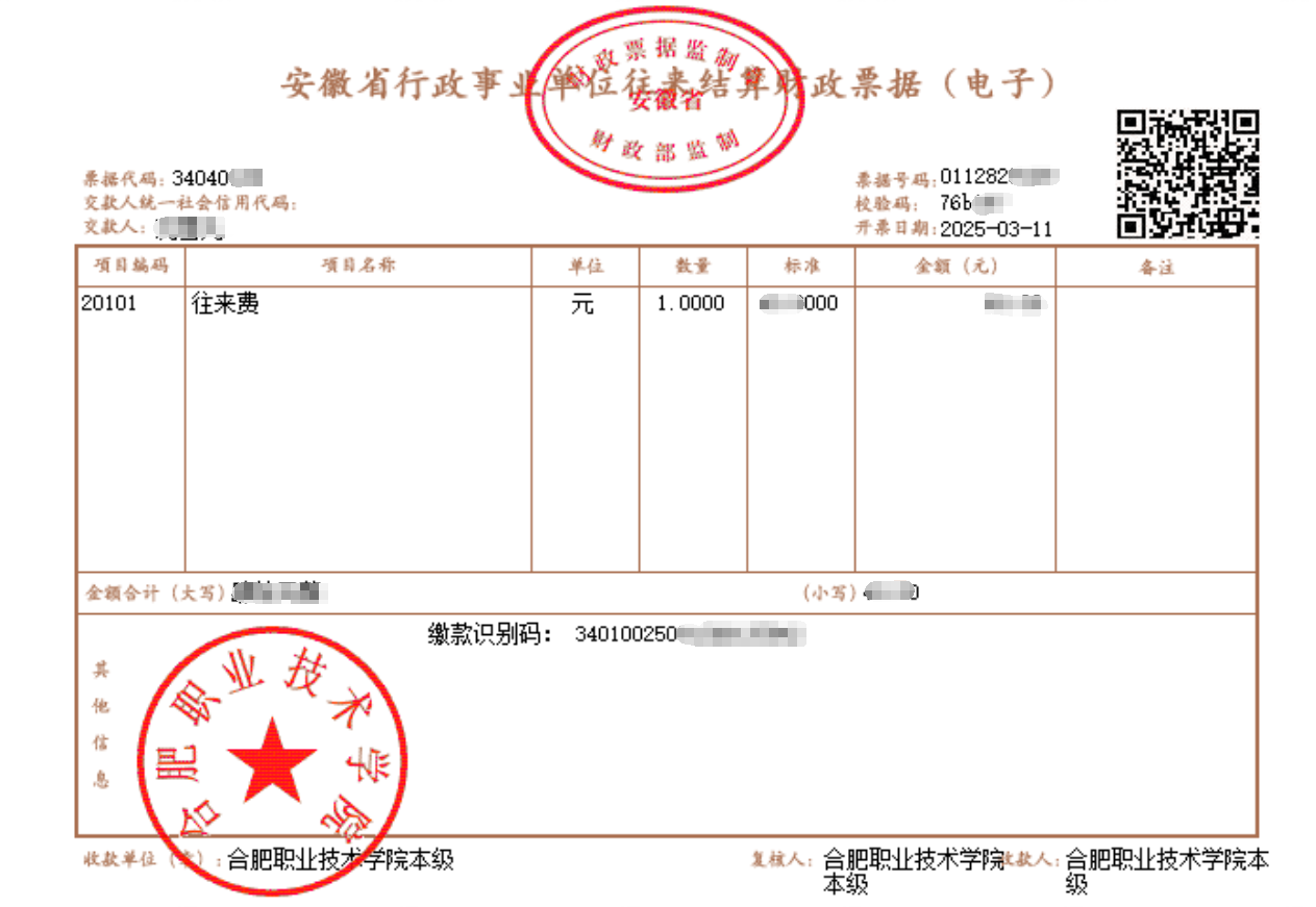 ②选择缴款识别码查验,输入在合肥职业技术学院官网“缴款识别码查询”项目复制的缴款识别码,点击查验即可。