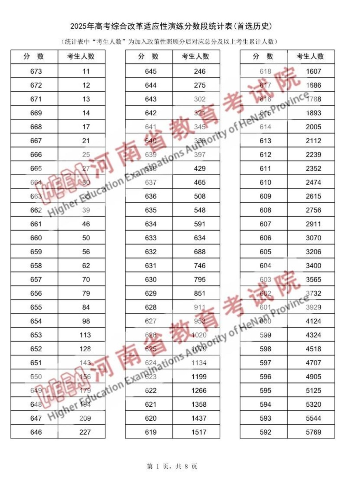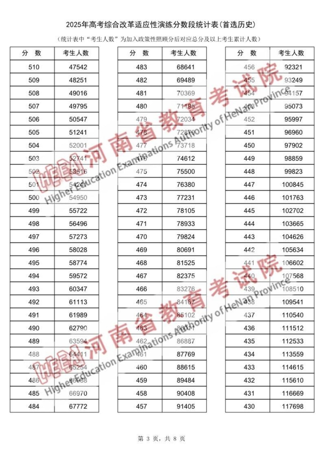 2025年高考综合改革适应性演练分数段统计表(首选历史)