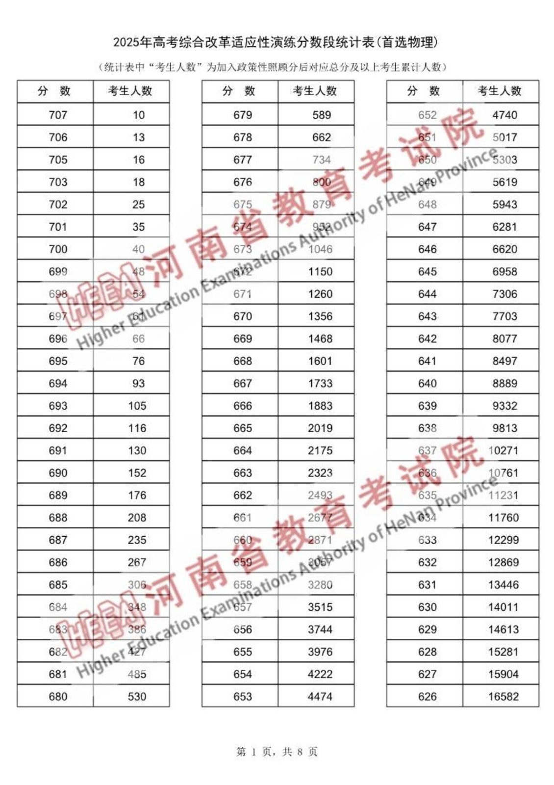 2025年高考综合改革适应性演练分数段统计表(首选物理)